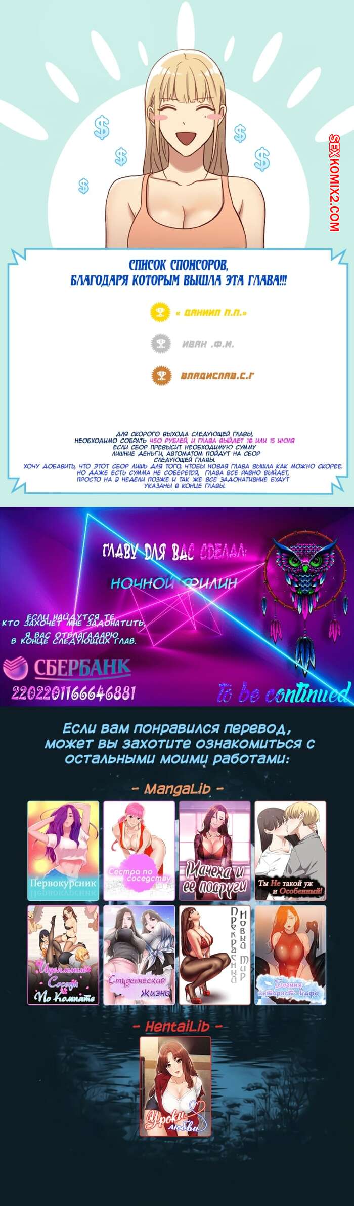 Камитэзуки2021-09-13Класс что заметил,именно первый перевод который я увидел от Ночного Филина это Сестра по соседству