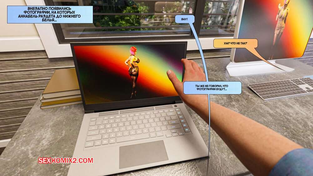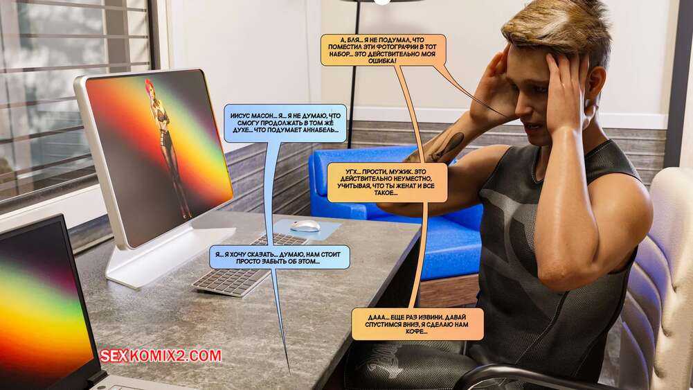 Порно комикс Новые соседи. Часть 4. The New Neighbors. Antalore42 Анабель пригласила Адама к себе и показала ему свои фото в нижнем белье. Парнишка сильно возбудился и отправился домой к своей жене, чтобы трахнуть ее и выпустить пар.