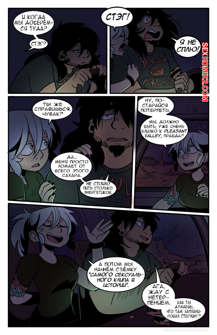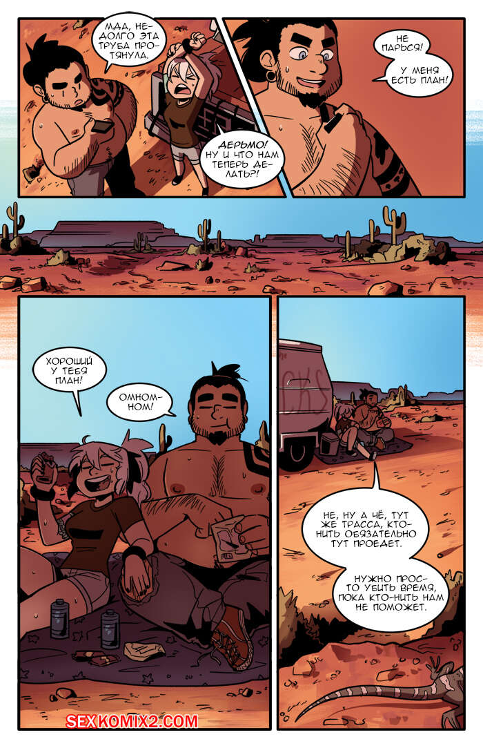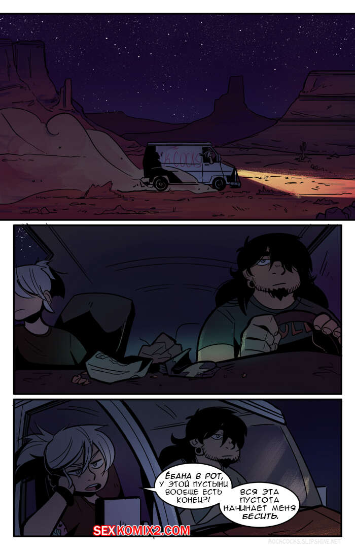 Порно комикс Рок хуй. The Rock Cocks. Часть 6. Горячо и тяжело Парочка отправилась в поездку на съемку самого сексуального клипа. Они так устали в поездке, что решили передохнуть и расслабиться. Они решили поебаться прямо в машине и после этого стало легче ехать. Добравшись на место они решили позвонить своему боссу, но тот не выходил на связь потому что снова ебался со своим дружком и от безысходности, парочка снова решила поебаться посреди пустыни.