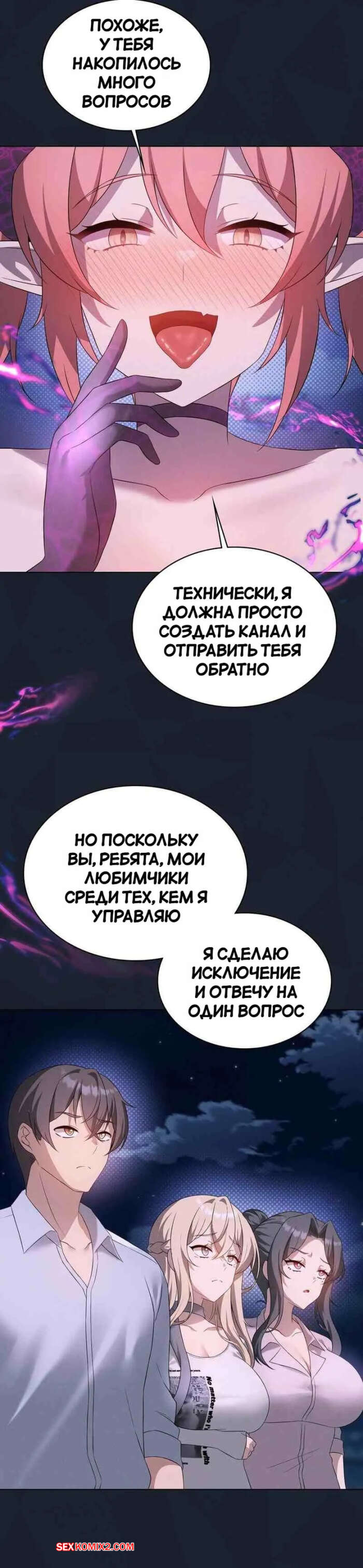 Порно комикс Повышайте уровень, пока не удовлетворитесь. Часть 59 Горячие красотки с шикарными телами были очень возбуждены и хотели трахаться. Они разделись и соблазнили паренька шикарными телами, после чего дали ему себя хорошенько выебать.