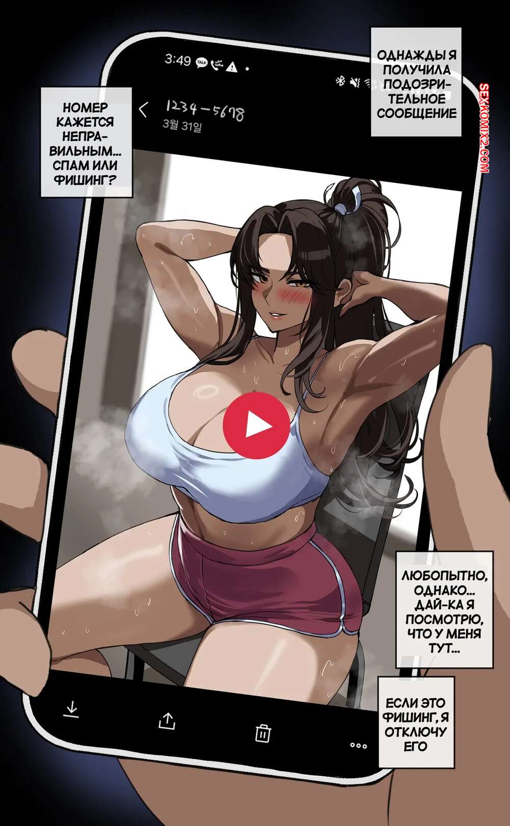 Порно комикс Иди ко мне, я помогу тебе. Come to Me I Will Give You a Hand. hellaP. Горячая брюнетка занималась в тренажерном зале, где решила повеселиться с симпатичным парнем. Она разделась и отсосала его большой хуй, после чего дала себя выебать.