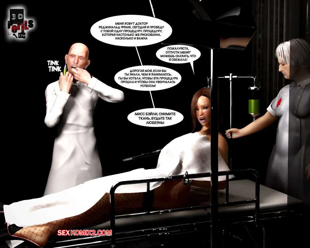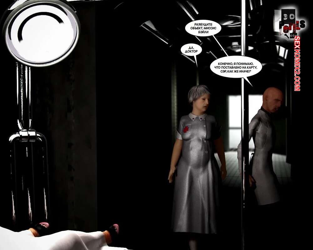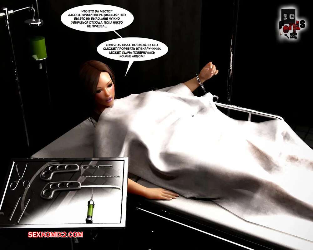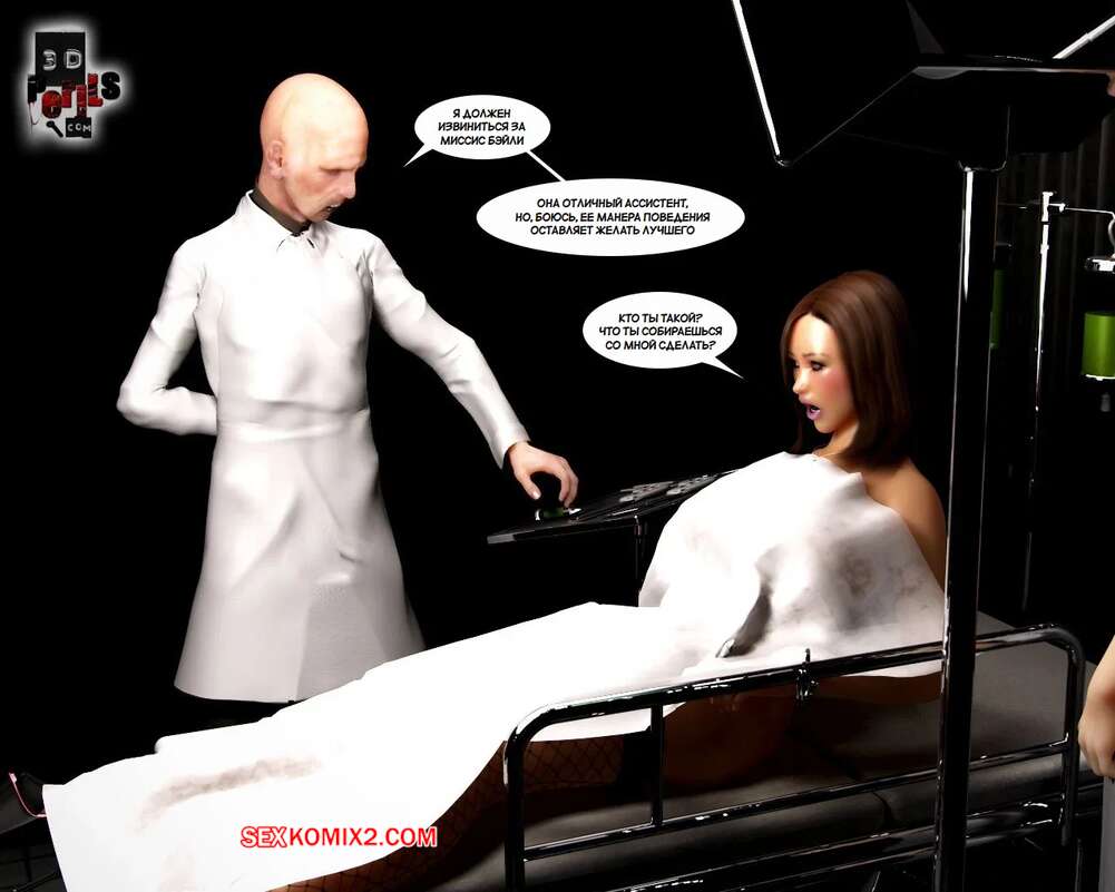 Порно комикс Похищение. Часть 8. The Abduction. 3D Perils Горячая милфа очнулась голой в лаборатории, прикованной к кушетке. Старик доктор сперва сделал ей укол, после чего вставил в нее свой большой хуй и выебал пизденку девушки.