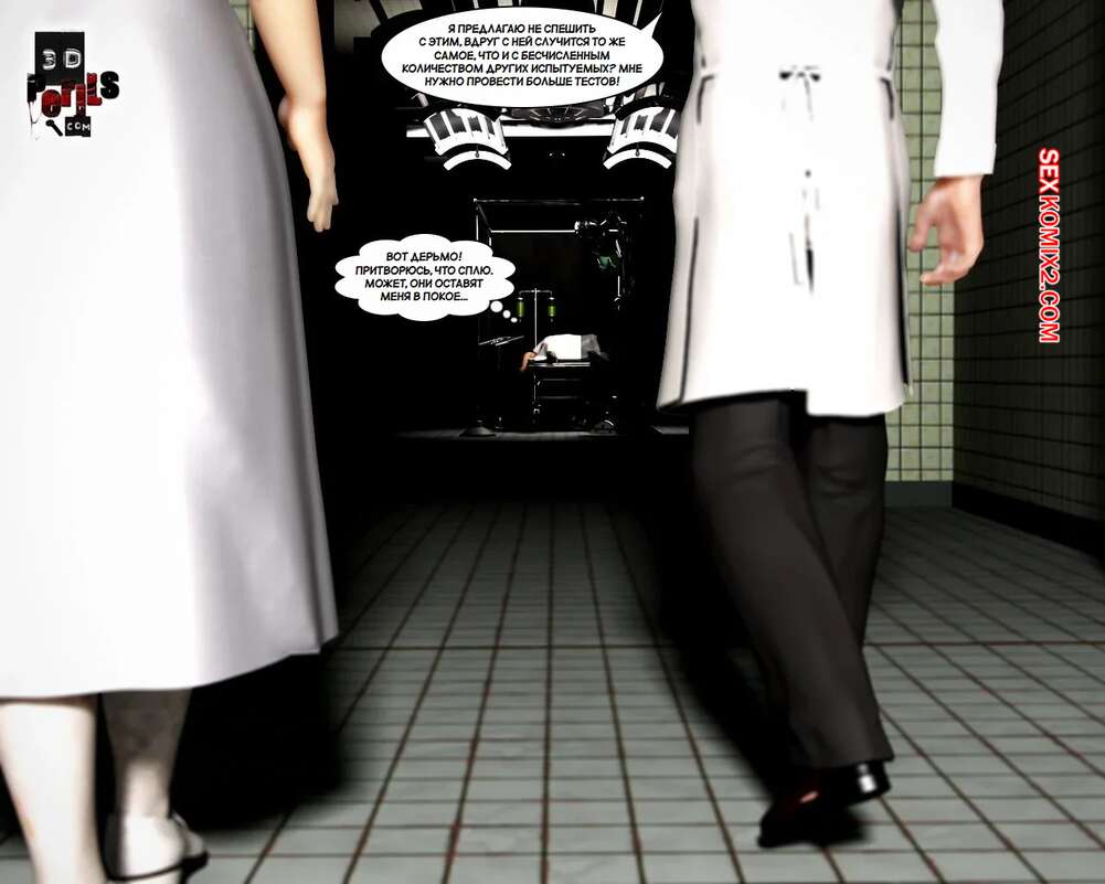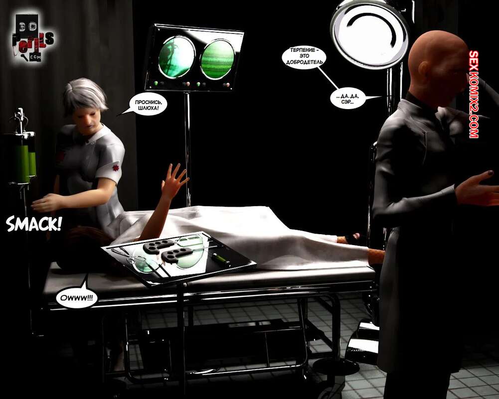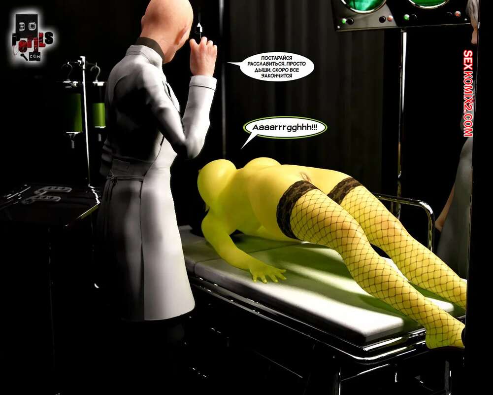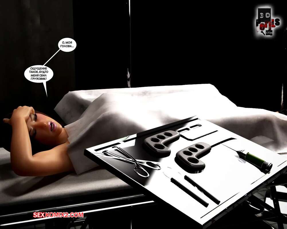 Порно комикс Похищение. Часть 8. The Abduction. 3D Perils Горячая милфа очнулась голой в лаборатории, прикованной к кушетке. Старик доктор сперва сделал ей укол, после чего вставил в нее свой большой хуй и выебал пизденку девушки.