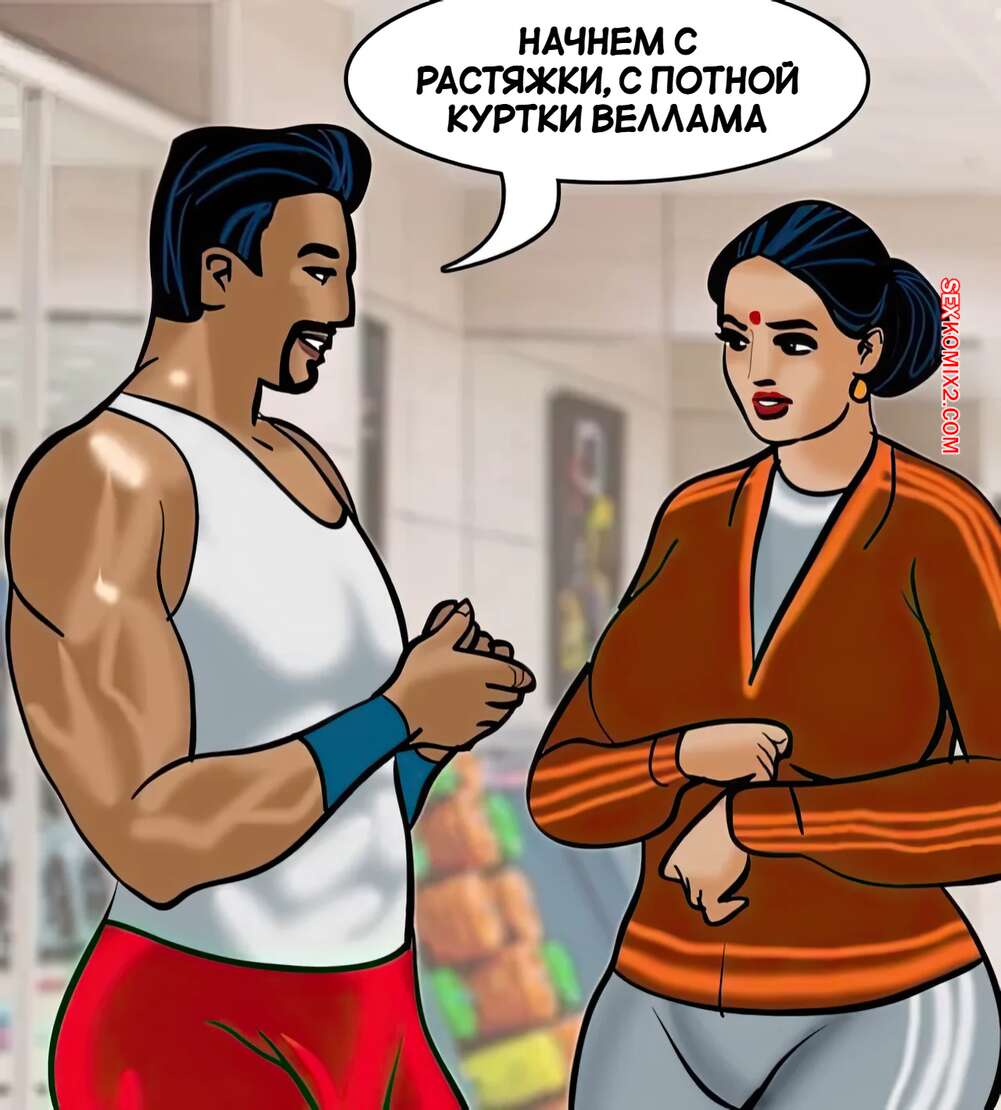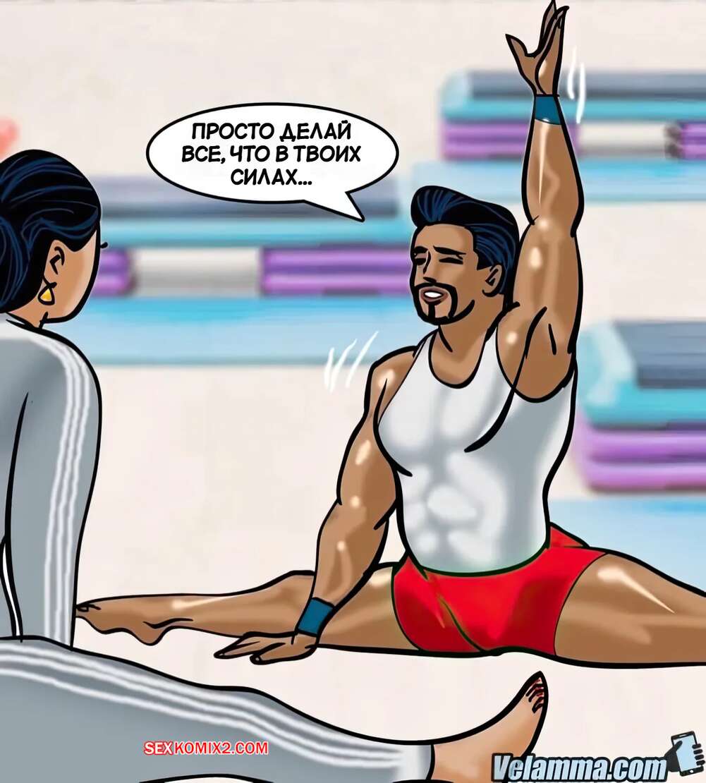 Порно комикс Веламма. Часть 75. Velamma. Velamma Веламма занималась в тренажерном зале и не смогла устоять перед членом тренера. Красотка разделась и отсосала хуй парня, после чего дала ему себя выебать в разных позах.