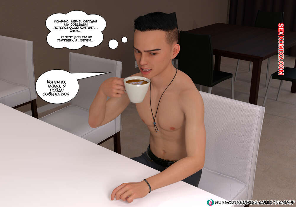 Порно комикс Моя мама порнозвезда. Часть 5. My Mom is My PornStar. NandoF Лукас и Глория отправились снова на студию, чтобы провести съемку видео вместо фото. Красотка надела сексуальное белье и вышла к своему сыну, у которого уже был стояк. Он начал сосать сиськи матери, доставляя ей огромное удовольствие.