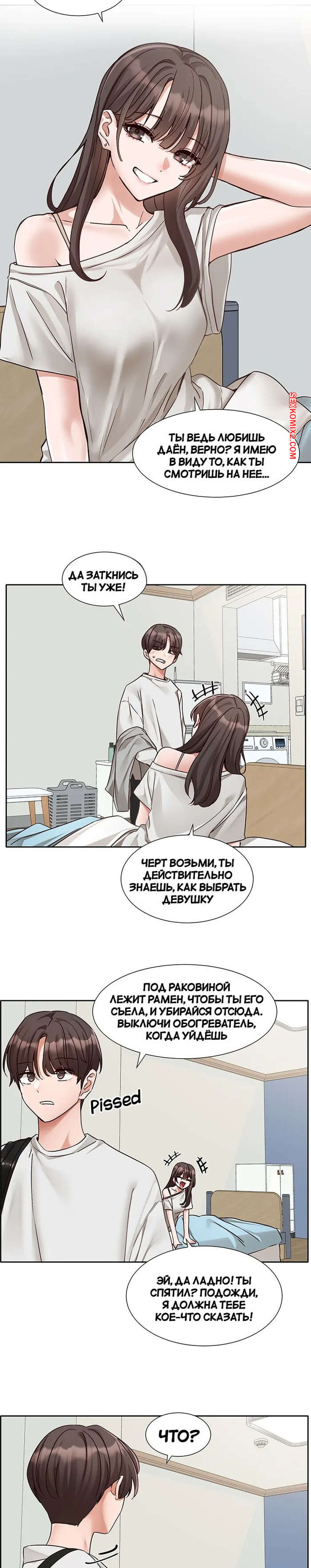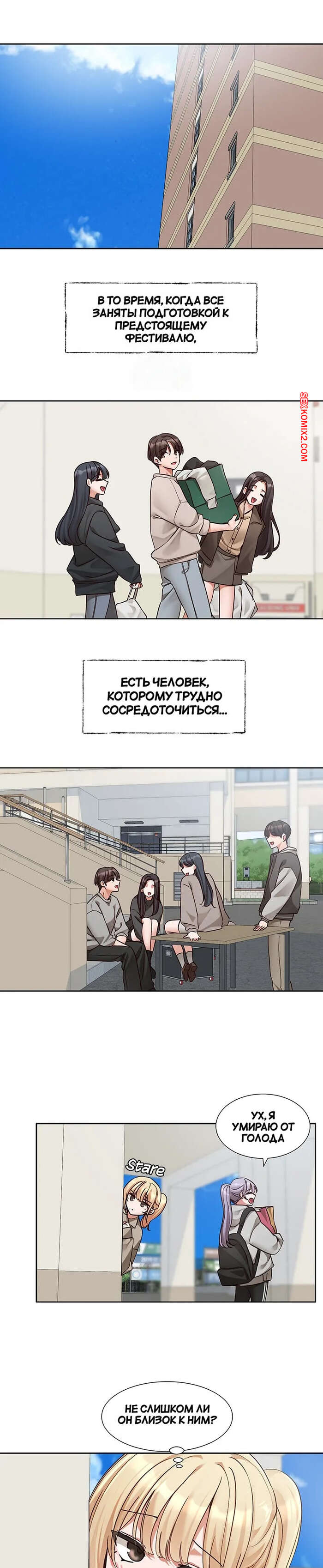 Порно комикс Театральный клуб. Часть 202. Circles. Theater cociety Блондиночка пригласила парня прогуляться вместе и они встретили свою подругу брюнетку. Девушка пригласила их пойти в кафе вместе, а ребята не стали отказываться.