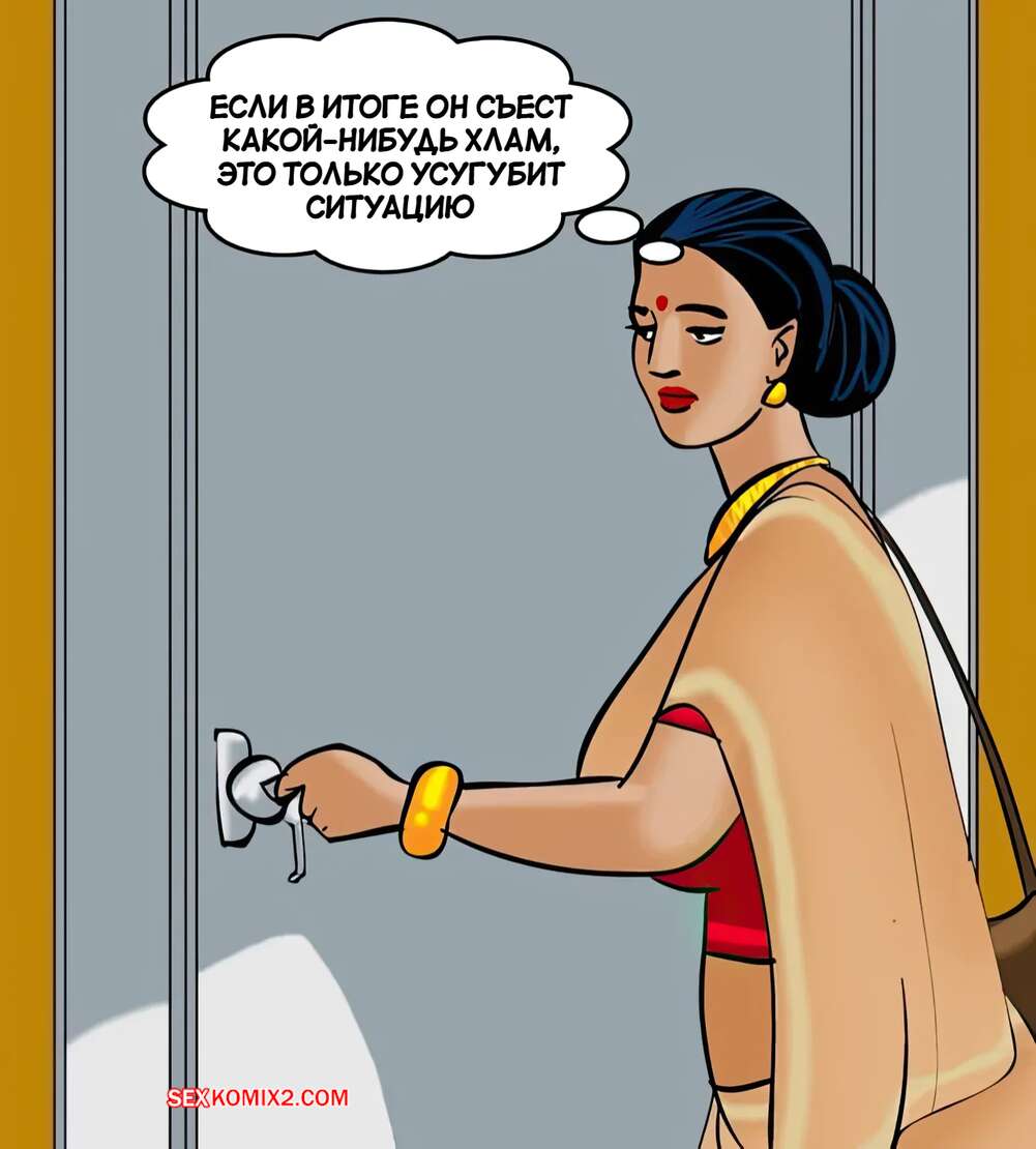 Порно комикс Веламма. Часть 80. Velamma. Velamma Горячая милфа Веламма примеряла в туалете сексуальное белье и ее спалил уборщик. Красотка встала перед ним на колени и отсосала хуй парня, после чего дала ему себя выебать.