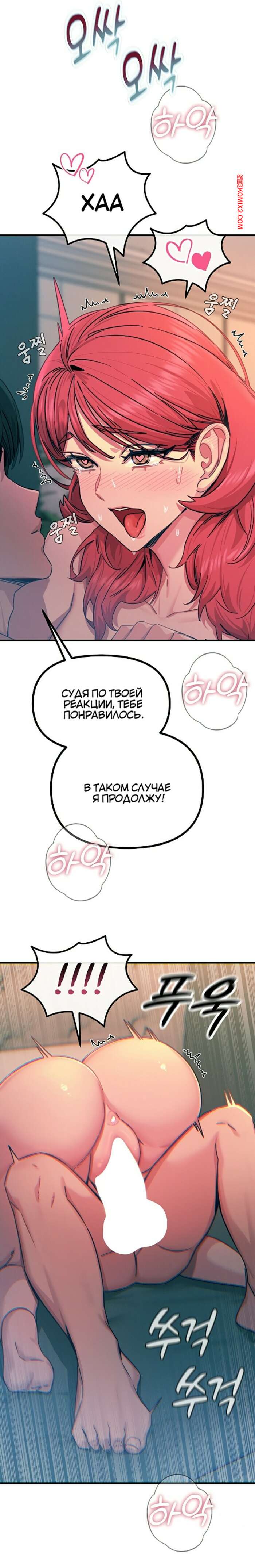 Порно комикс Возвращение неудачника в школьные годы. Часть 24 и 25 Рыжая красотка встала на колени перед своим дружком и отсосала его член. Девушка раздвинула ножки и дала парню себя хорошенько выебать, получив огромное удовольствие.
