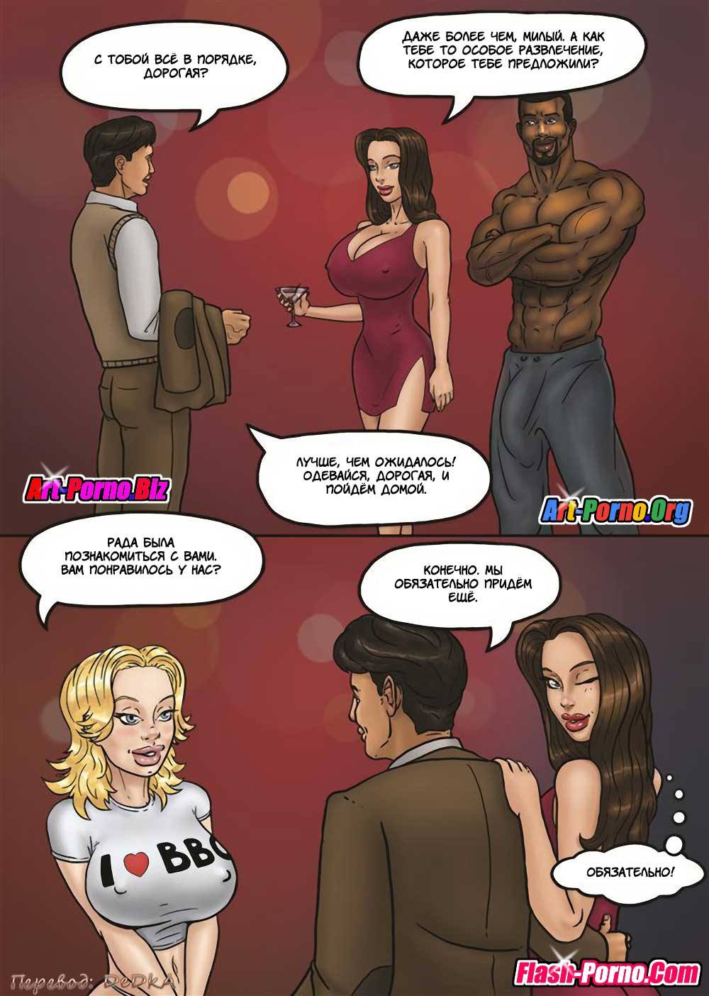 Порно комикс «Фантазии Х». Молодой парень уже очень давно хочет сходить в клуб стингеров со своей девушкой, но никак не может её уговорить. Она постоянно отказывается, так как это сумасшествие. После долгих уговоров, все токи ему удалось. И она пошли в клуб, но каково было его удивление, что так из парней в основном молодые чернокожие парни с огромными членами, а девушек не очень много и то все хотят черненьких. Его возлюбленная не растерялась и сразу же начала отжигать с одним из красавцев. Она не могла понять почему её муж сидит обиженный в сторонке.
