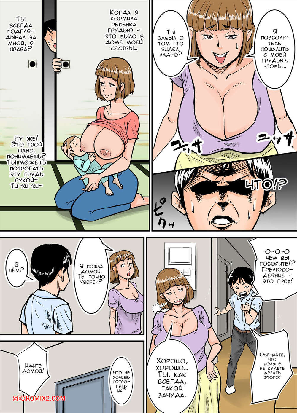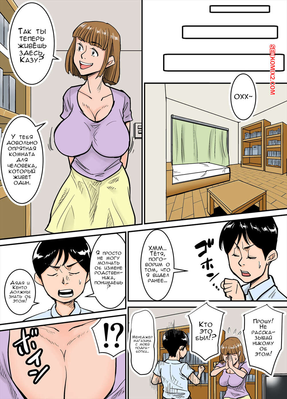Порно комикс Тётушка и её тайна. Eroi Oba san. Nobishiro Горячая милфа занималась уборкой по дому, а ее племянник наблюдал за тетей и возбудился. Он снял одежду с красотки, после чего хорошенько выебал ее пизденку.