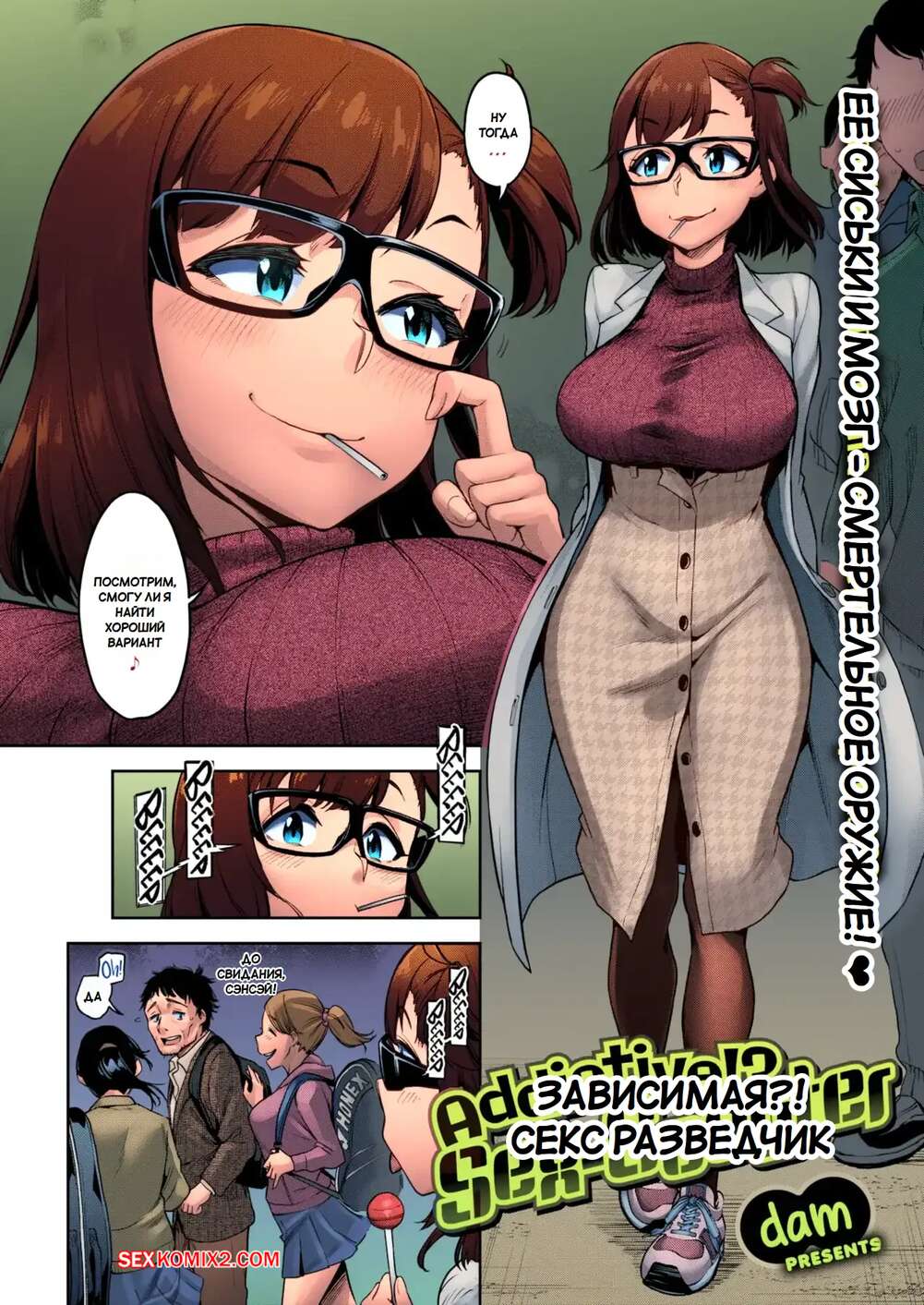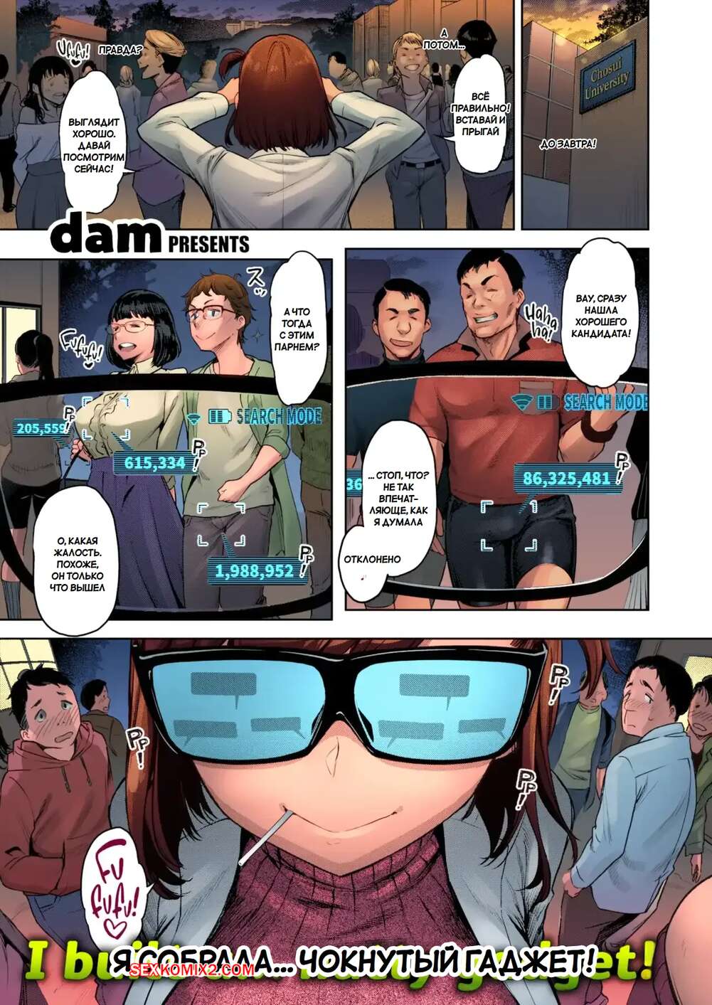 Порно комикс Чуудоку. Секс разведчик. Chuudoku. Sex scouter. Dam. Горячая брюнетка создала устройство, которое увелчивает член парней. Она нашла подопытного и увеличила ему хуй, после чего оседлала парня и дала выебать свою пизденку.