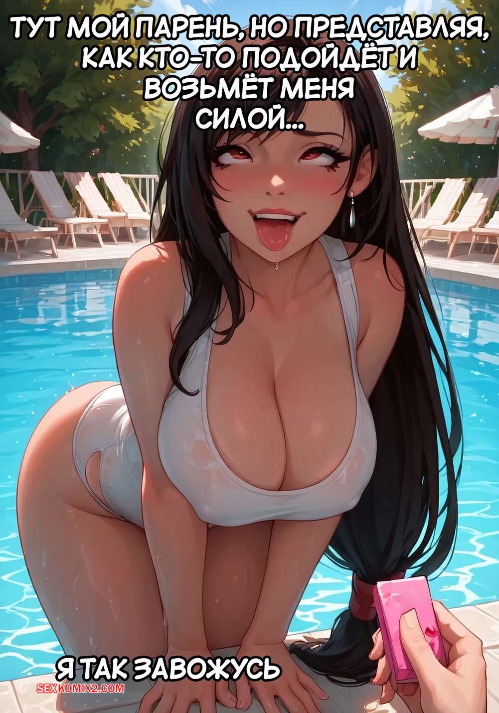 Порно комикс Final Fantasy. День у бассейна с Тифой. Версия с текстом. Bearly L. Eagle Горячая брюнетка отдыхала у бассейна и была в очень игривом настроении. Она соблазнила темнокожего парня и стала у него отсасывать, после чего парень кончил ей на лицо.