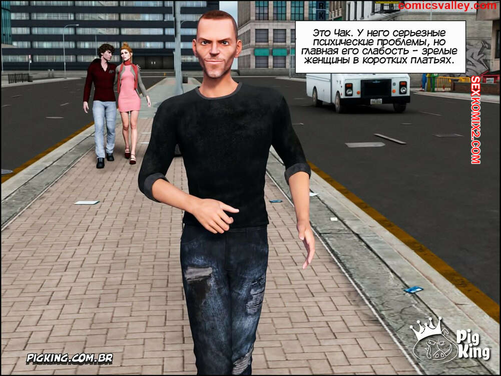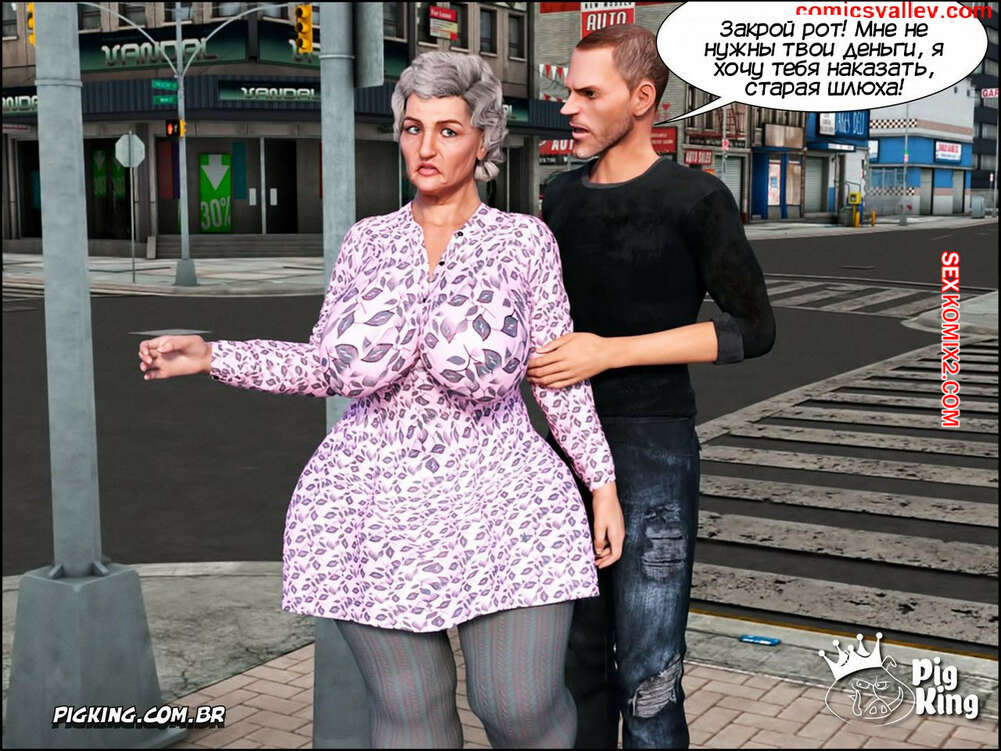 Порно комикс Гаммер. Часть 1. Gammer. PigKing Парень психически болен и возбуждается каждый раз, когда видит зрелых дам в коротких платьях. Он завел старушку в переулок, где дал ей отсосать свой член и выебал ее пизденку.