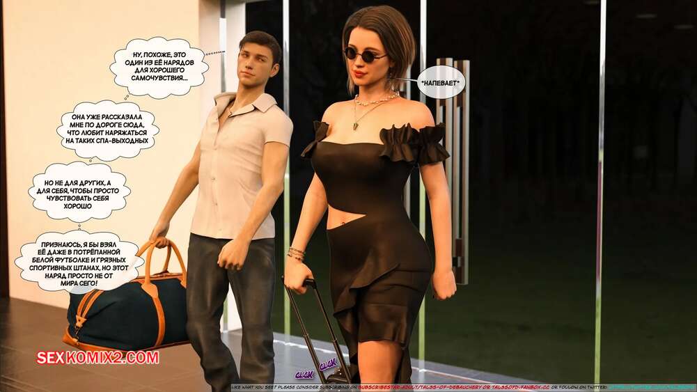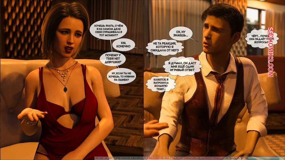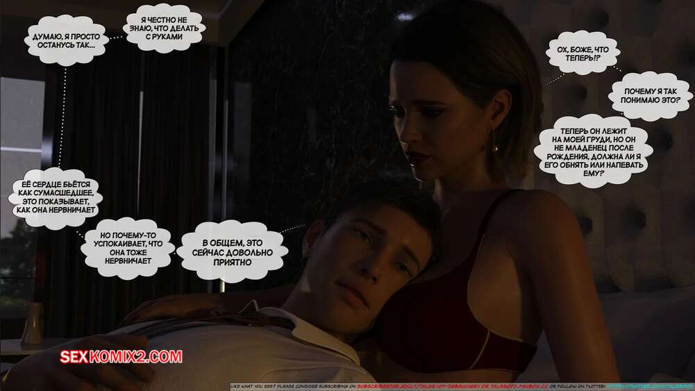 Порно комикс Материнский стыд. Часть 2. A Mothers Shame. Tal3s of Debauchery Изабелла с сыном сняли номер в отеле, чтобы провести время в необычной обстановке. Они отправились в бар потанцевать, после чего между ними стало расти сексуальное возбуждение.