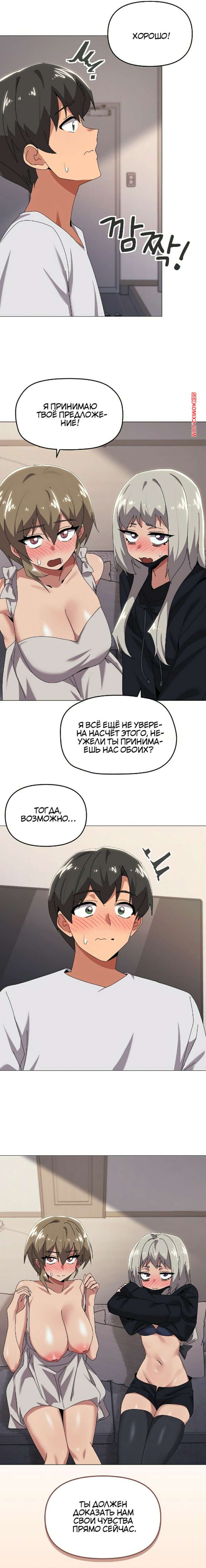 Порно комикс Что не так с этой семьей. Часть 42 и 43 и 44. gajogkkili wae geulae Горячие красотки были очень возбуждены и хотели трахаться. Они разделись перед парнем и стали сосать его член, желая поскорее устроить страстную групповую еблю.