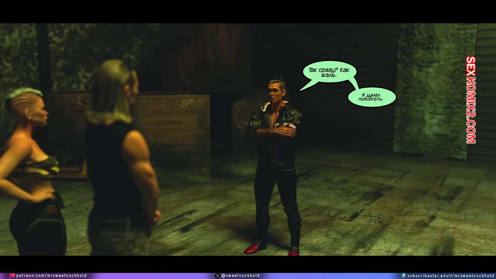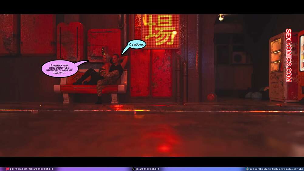 Порно комикс Киберпанк. Часть 3. Cyberpunk. Mr.SweetCuckhold Луна вернулась с задания и ее парень попытался узнать что с ней произошло после отключения камеры. Девушка ничего не рассказала любимому, после чего попросила его жестко ее выебать.