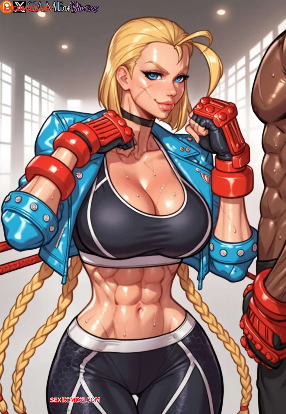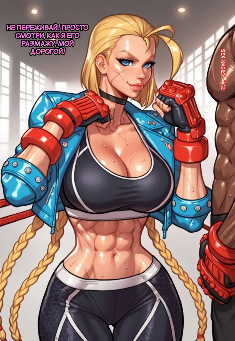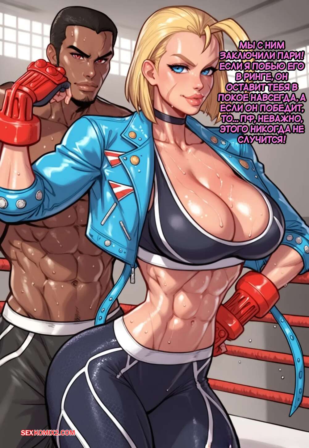 Порно комикс Street Fighter. Кэмми Уайт. Бросить вызов хулигану. Cammy White. Game of Bimbos. Горячая блондинка билась на ринге с темнокожим парнем, после чего они решили принять душ вместе. Красотка отсосала там хуй парня, после чего дала ему себя выебать во все дырочки.