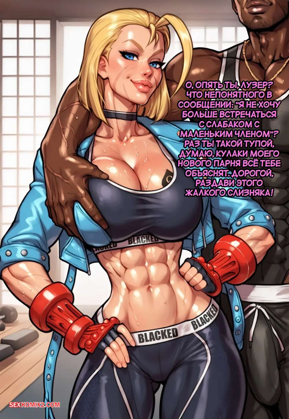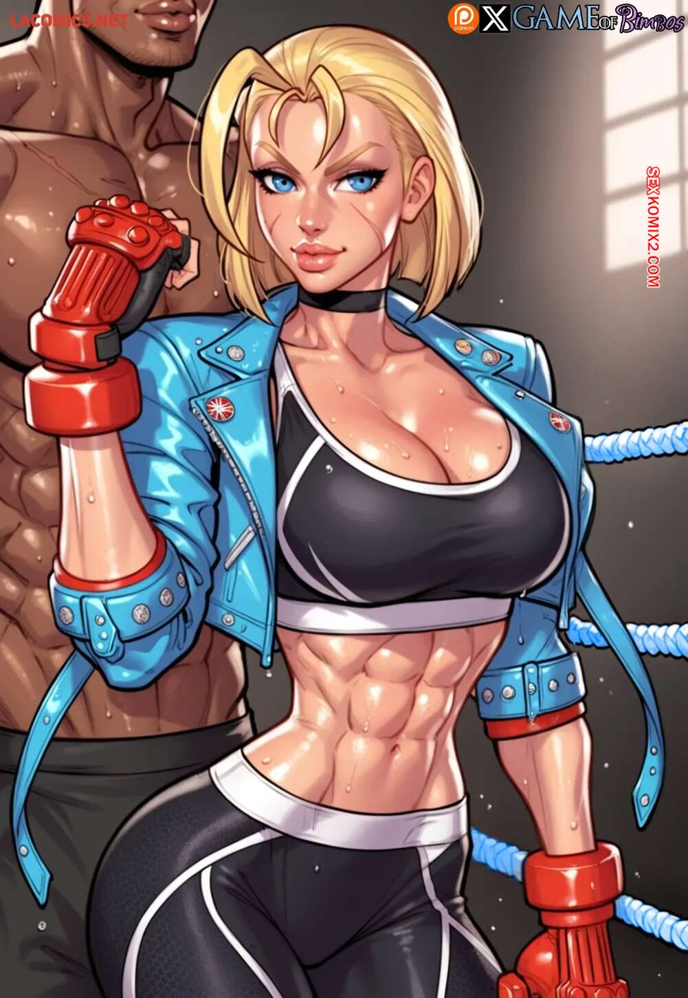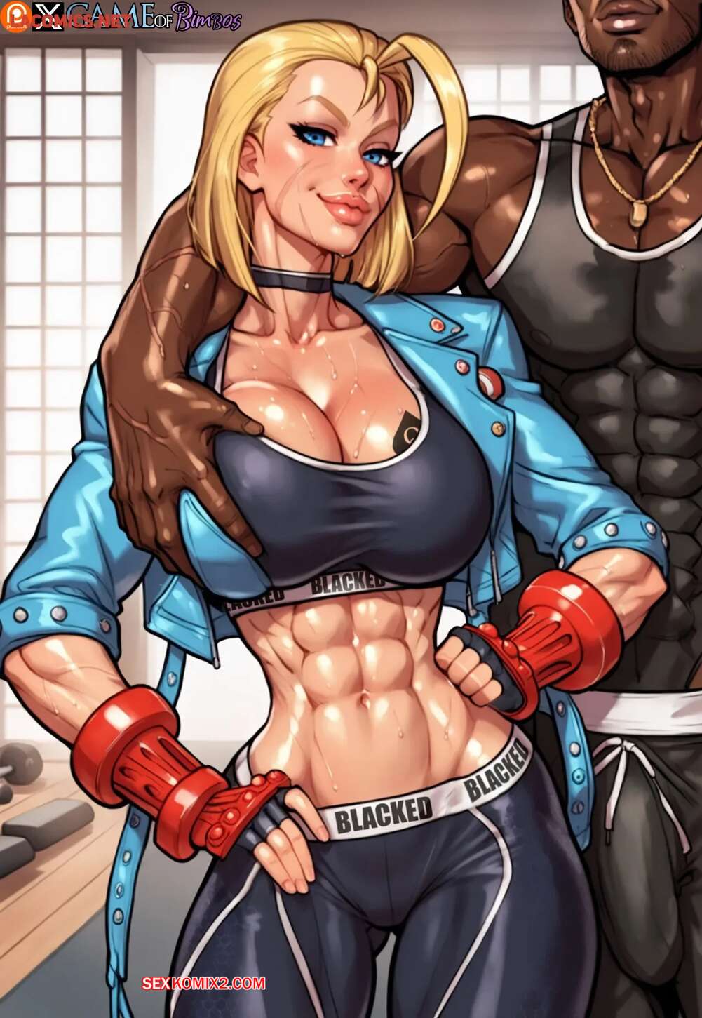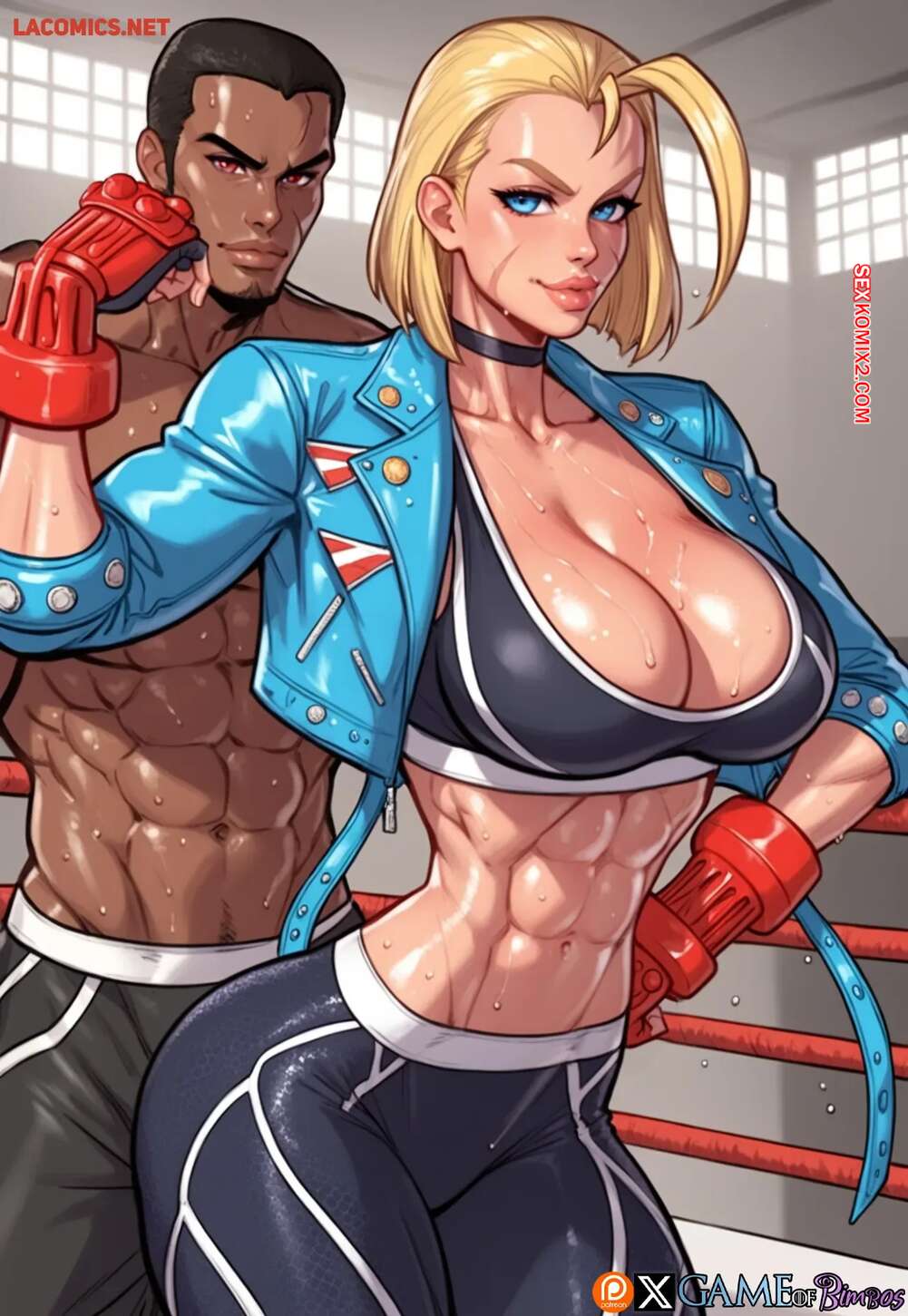 Порно комикс Street Fighter. Кэмми Уайт. Бросить вызов хулигану. Cammy White. Game of Bimbos. Горячая блондинка билась на ринге с темнокожим парнем, после чего они решили принять душ вместе. Красотка отсосала там хуй парня, после чего дала ему себя выебать во все дырочки.
