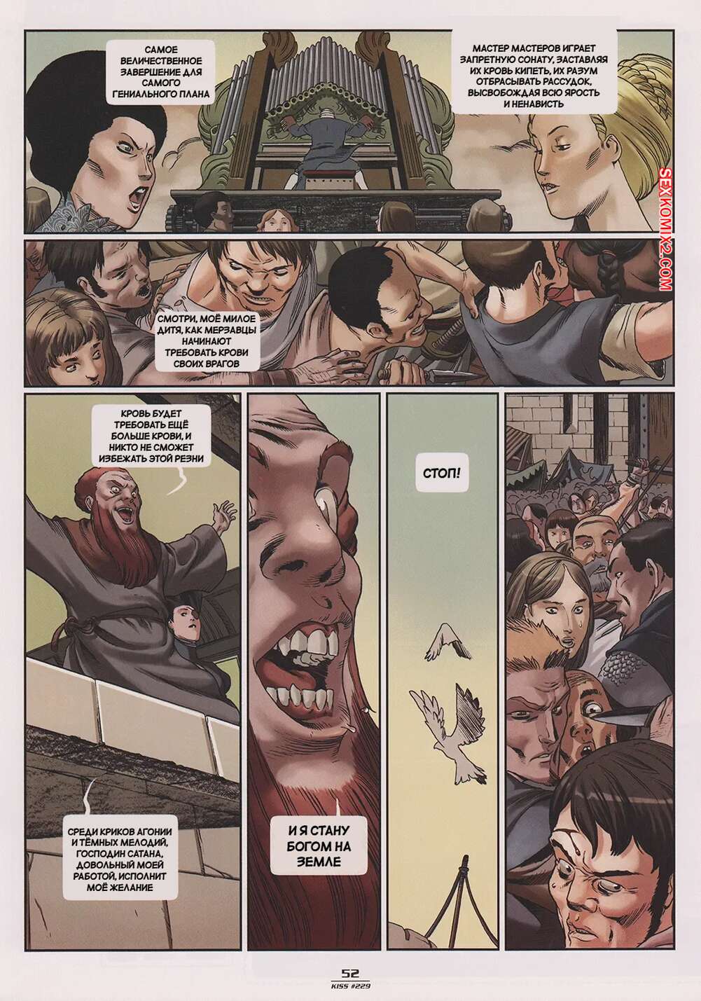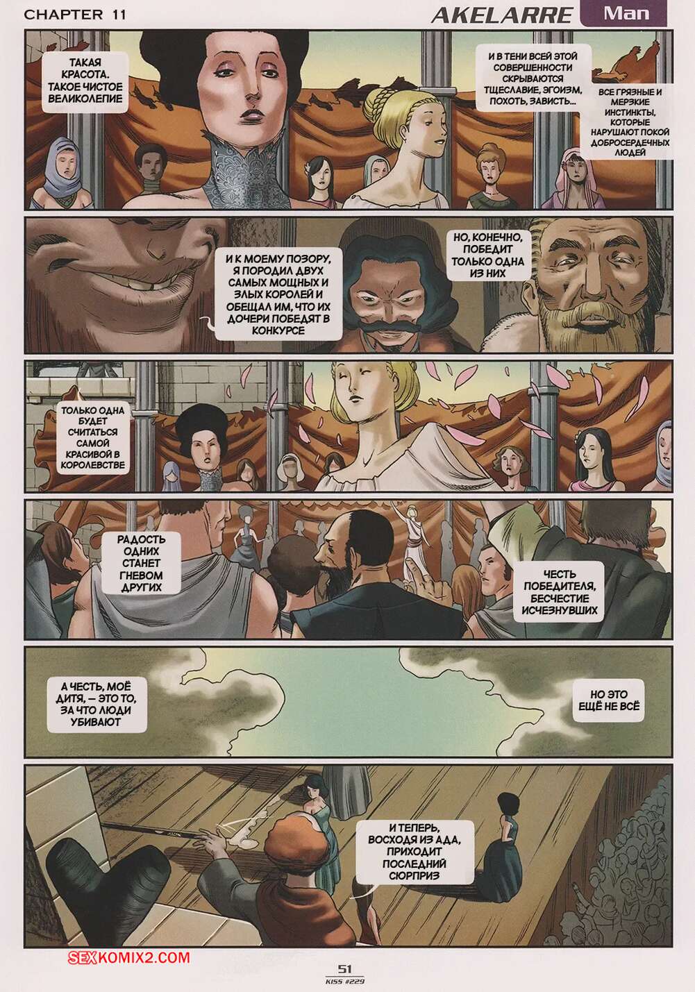 Порно комикс Акелларе. Часть 11. Akelarre. Manolo Carot Толпа пришла на площадь, где все возбудились и устроили невероятную оргию. Красотки разделись и стали сосать хуи парней вокруг, после чего занялись масштабной еблей.