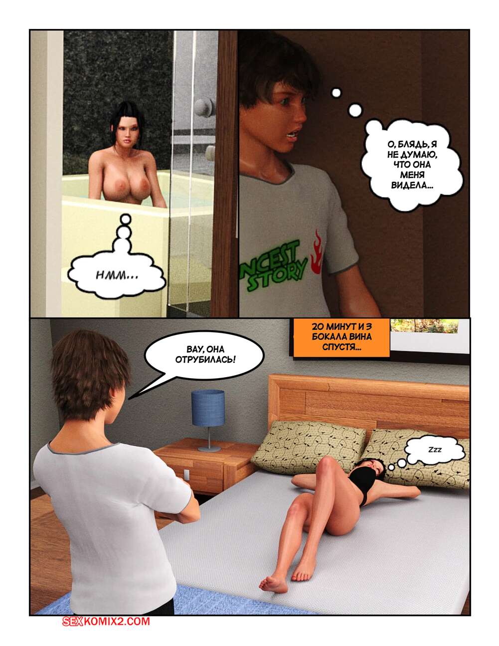 Порно комикс История инцеста. Часть 2. Мама. Incest Story. Icstor Парнишка без ума от шикарного тела своей горячей мамочки. Он остался с ней наедине и соблазнил красотку своим членом. Она разделась и стала у него отсасывать, помогая парню кончить.