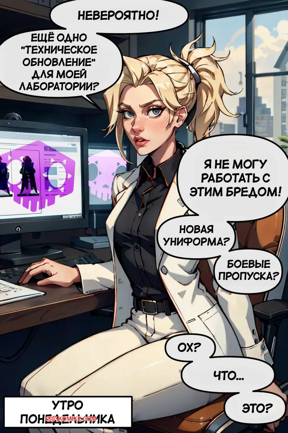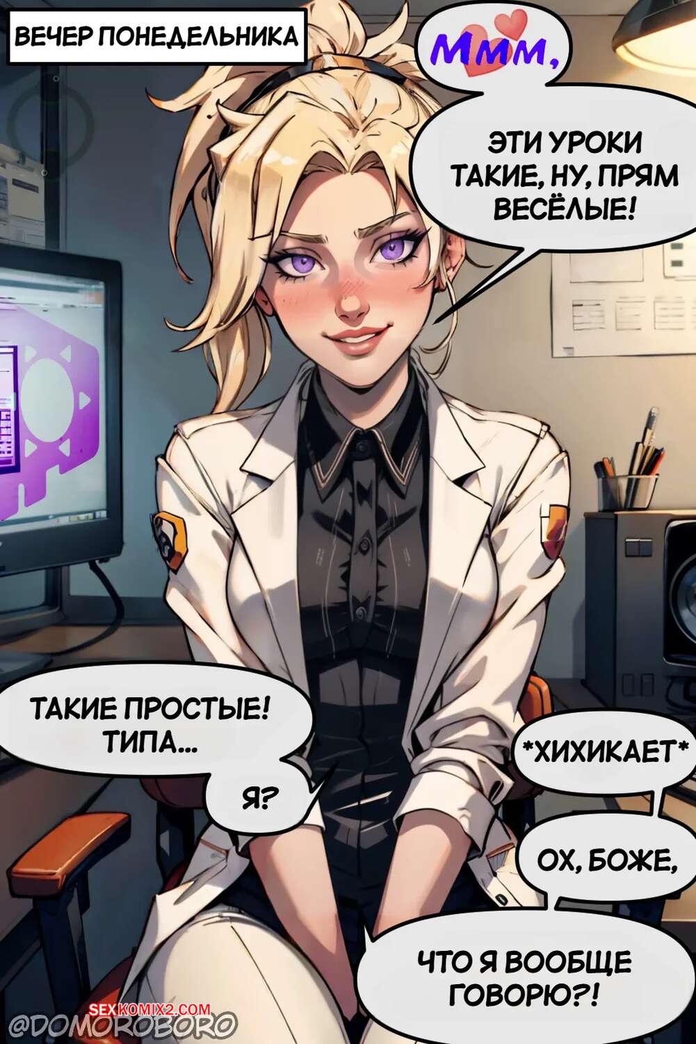 Порно комикс Переписывание Мерси. Неделя 1. Mercys OverWrite. Domoroboro. Горячая блондинка получила обновление для своей лаборатории и с ней стали происходить изменения. Красотка стала более извращенной, начала носить откровенную одежду, а также не против потрахать свои дырочки с помощью секс игрушек по вечерам.