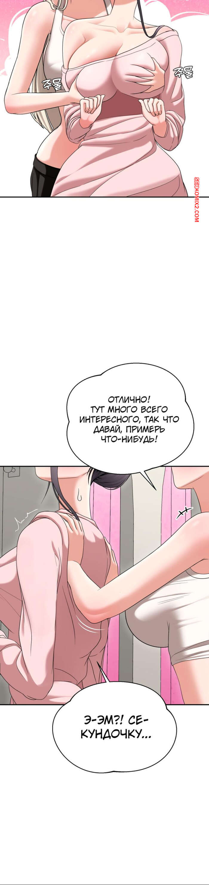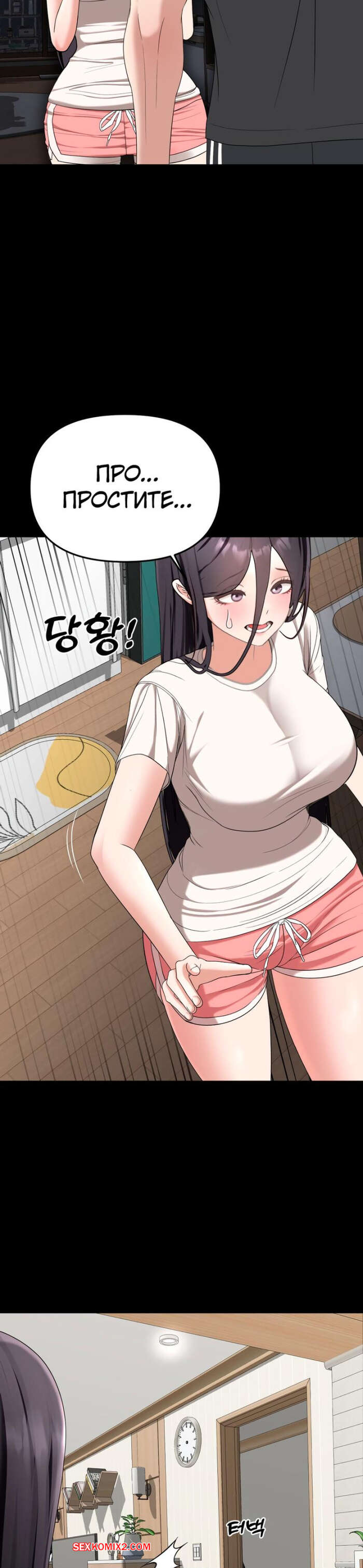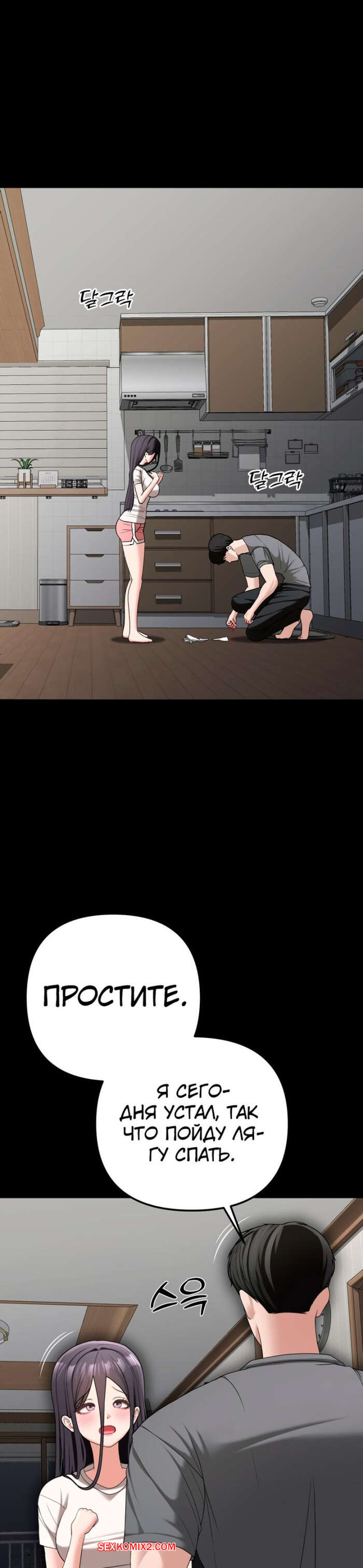 Порно комикс Её жуткий список желаний. Часть 31 и 32. ossaghan neouibeokisliseuteu Горячая брюнетка приняла душ и хочет трахаться. Она вышла к своему дружку в обтягивающей одежде и стала его соблазнять, ставя паренька в неловкое положение.