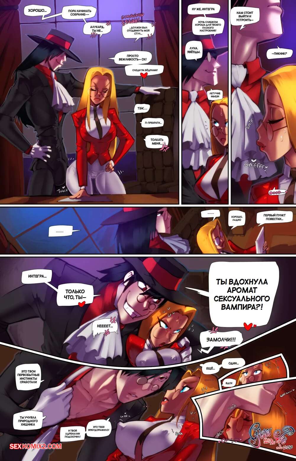 Порно комикс Hellsing. Интегра уступает. Integra Gives In. Fred Perry. Парень хочет трахнуть горячую блондинку и дает ей вдохнуть свой аромат, который возбуждает девушку. Она перестала сопротивляться и раздвинула ножки, чтобы парень ее трахнул.