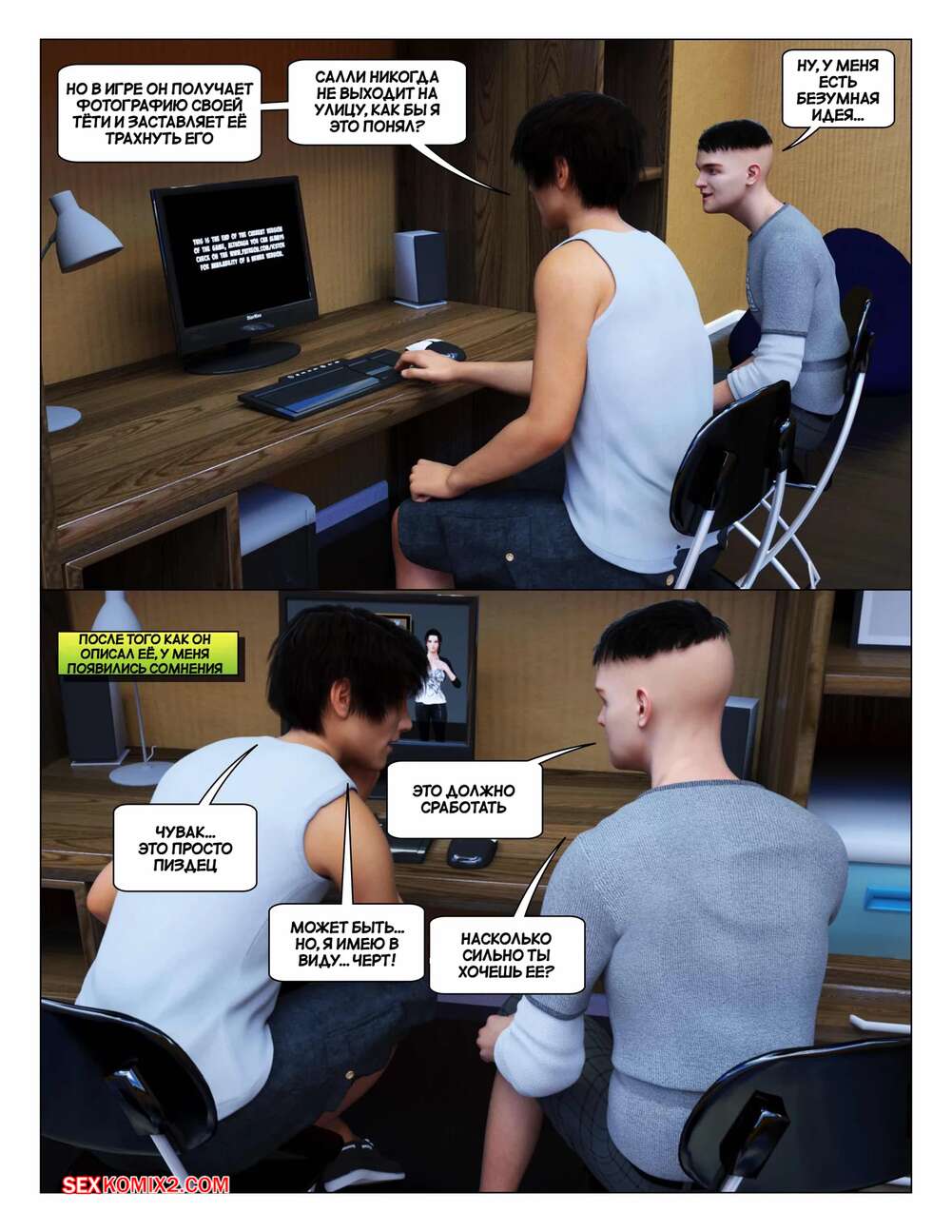 Порно комикс История инцеста. Часть 8. Просьба. Incest Story. Icstor После смерти родителей парнишка живет с горячей подругой своей матери. У нее шикарное тело и парень постоянно дрочит свой член, но наконец решил попросить красотку отсосать ему и заняться сексом.