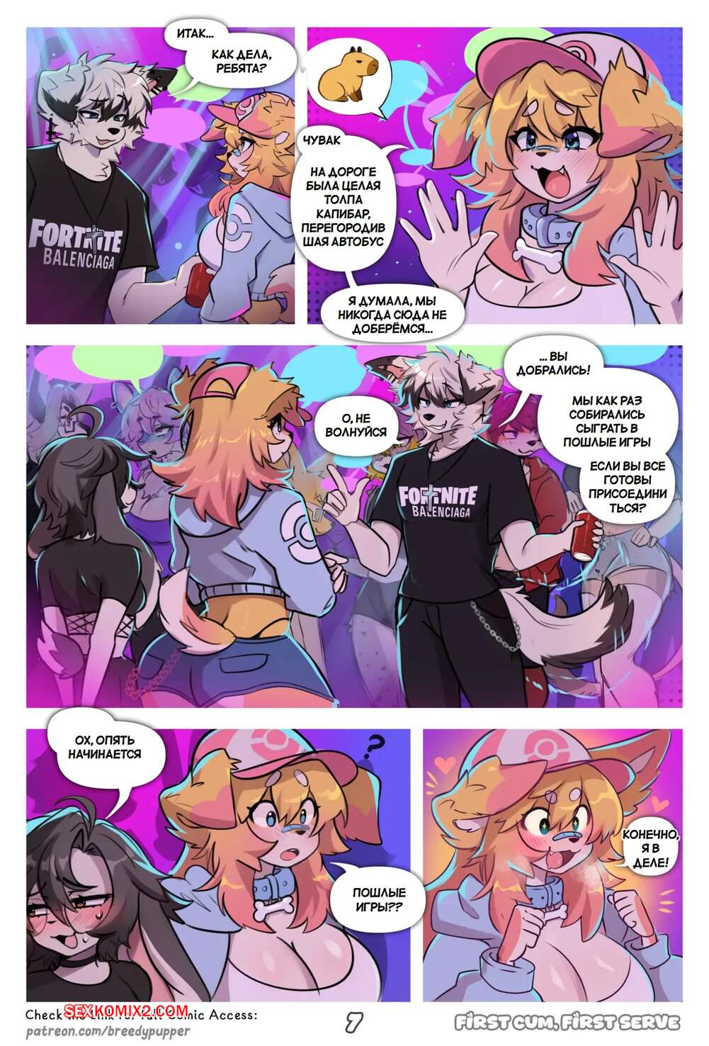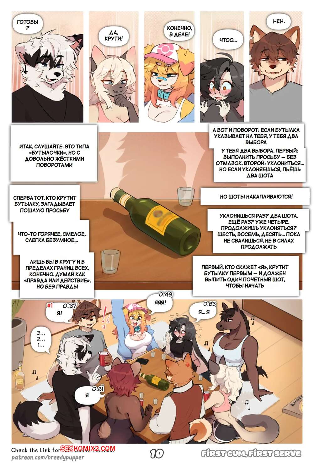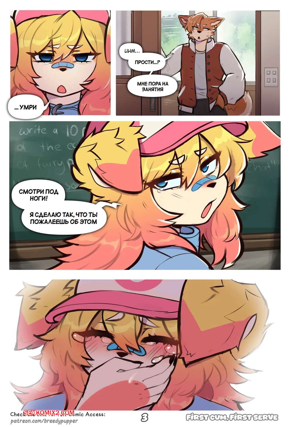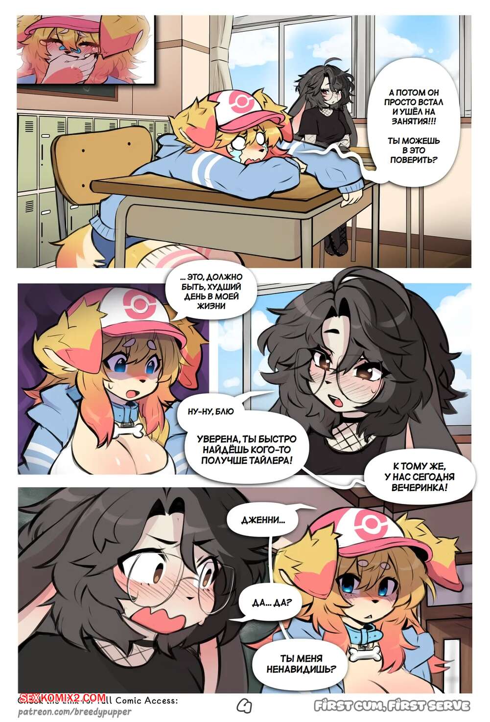 Порно комикс Первый кончил, первый обслужил. First Cum, First Serve. Breedypupper. Горячая блондинка фурри влюблена в парня из своего колледжа и хочет с ним сблизиться. Девушка отправилась на студенческую вечеринку, где привлекла внимание многих парней.