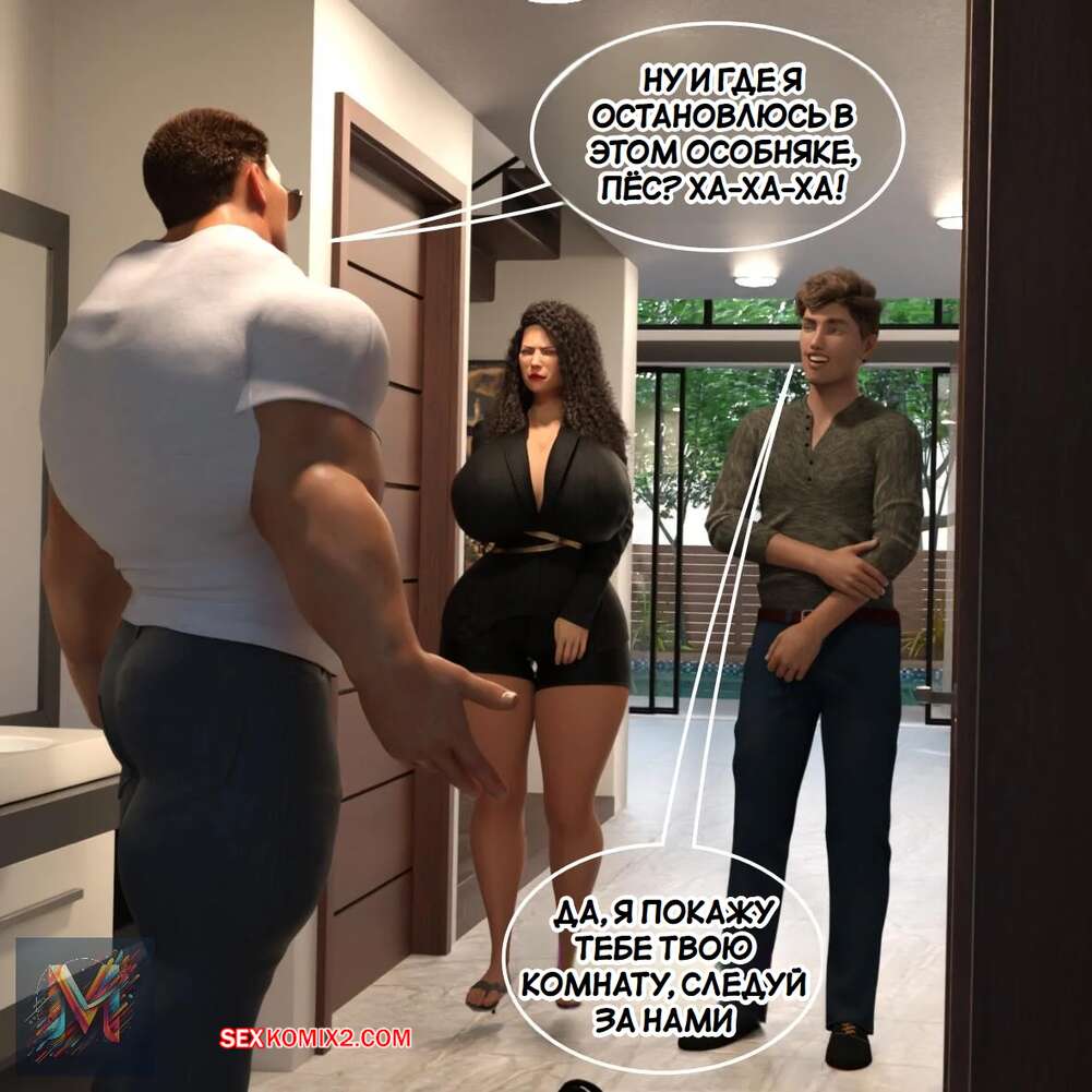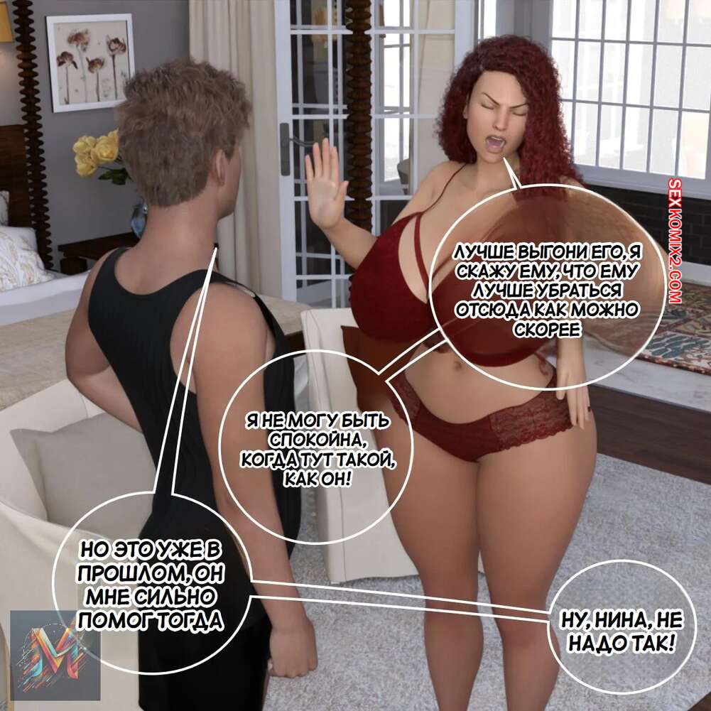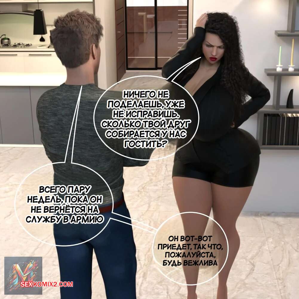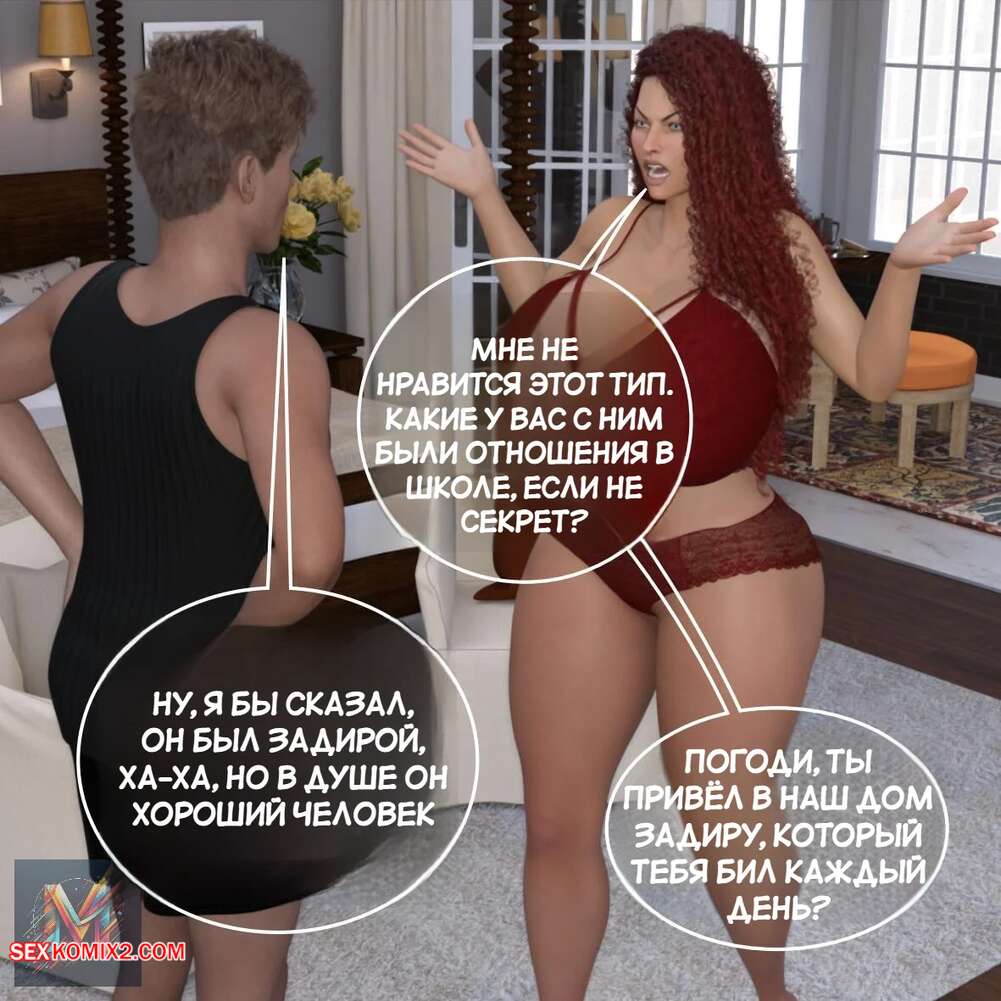 Порно комикс Укрощение строптивной жены. Часть 1. Megadroide00. Горячая милфа зашла в комнату к другу своего мужа, чтобы сообщить ему о том, что он не сможет жить у них. Парень не стал слушать сисястую сучку и дал ей отсосать свой член, после чего хорошенько ее выебал.
