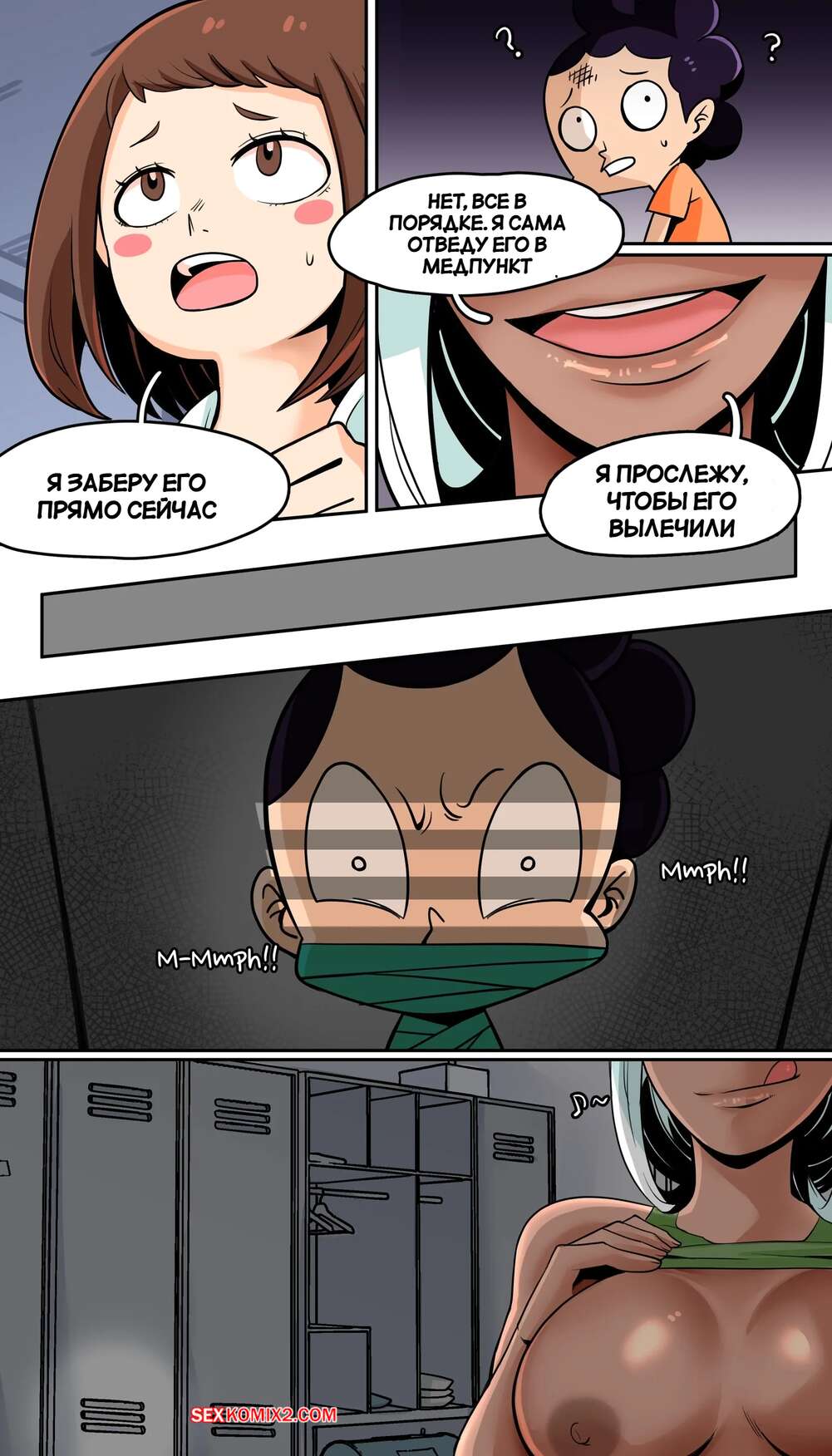 Порно комикс Академия. Момо и Мирко. Momo and Mirko. TSFSingularity Мирко занималась в тренажерном зале, но в ее тело вселился Минета. К красотке присоединилась Момо, которая решила отдохнуть от тренировки и устроить лесбийскую еблю.