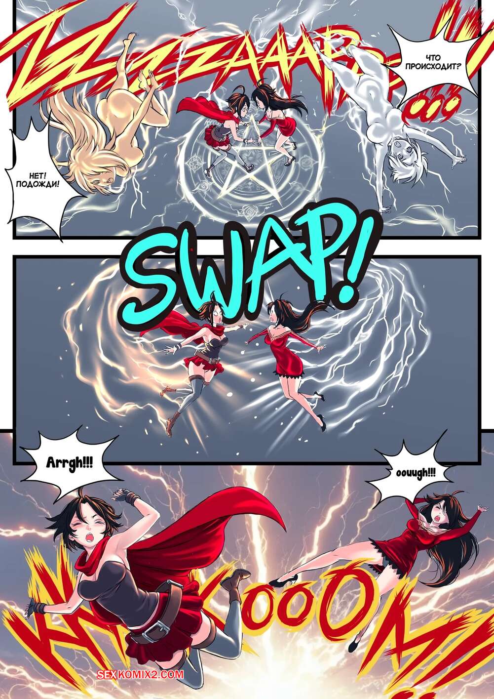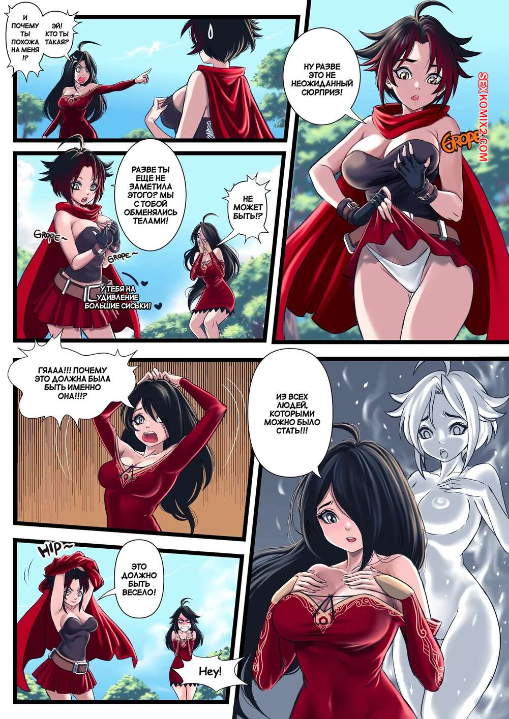 Порно комикс RWBY. Обмен телами. Руби и Роза. A Side Of Cinder. TSFSingularity, ZafieComics Горячие красотки поменялись телами и ситуация их возбудила. Девушки разделись и стали ласкать друг дружку, после чего занялись страстной еблей, получив удовольствие.