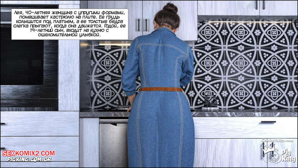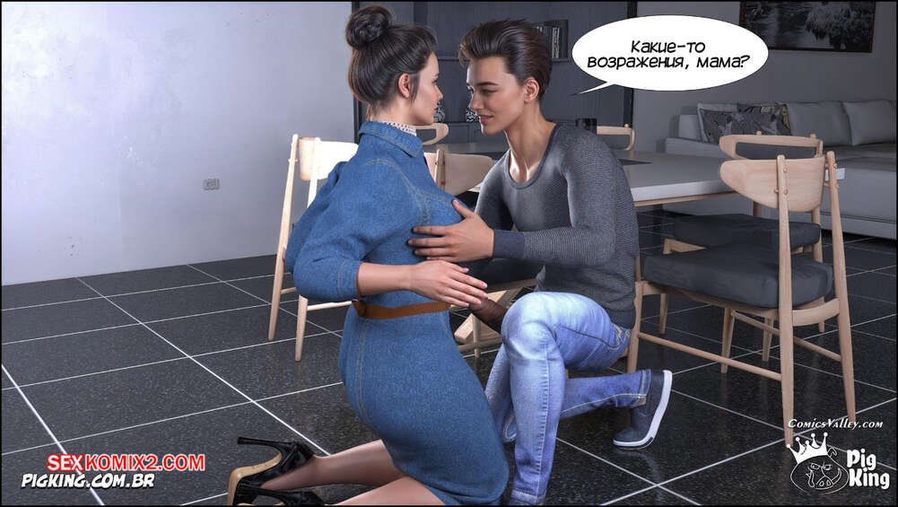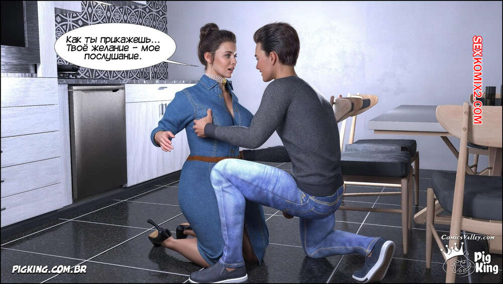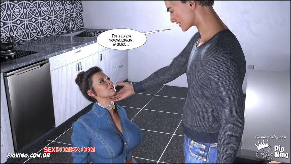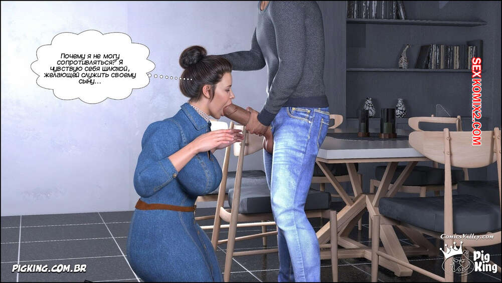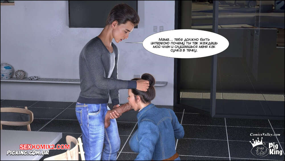Порно комикс Ошейник. Часть 1. The Collar. PigKing Парнишка надел своей горячей мамке ошейник, превратив ее в свою послушную сучку. Он приказал мамочке раздеться, после чего она взяла в ротик хуй парня и хорошенько ему отсосала.