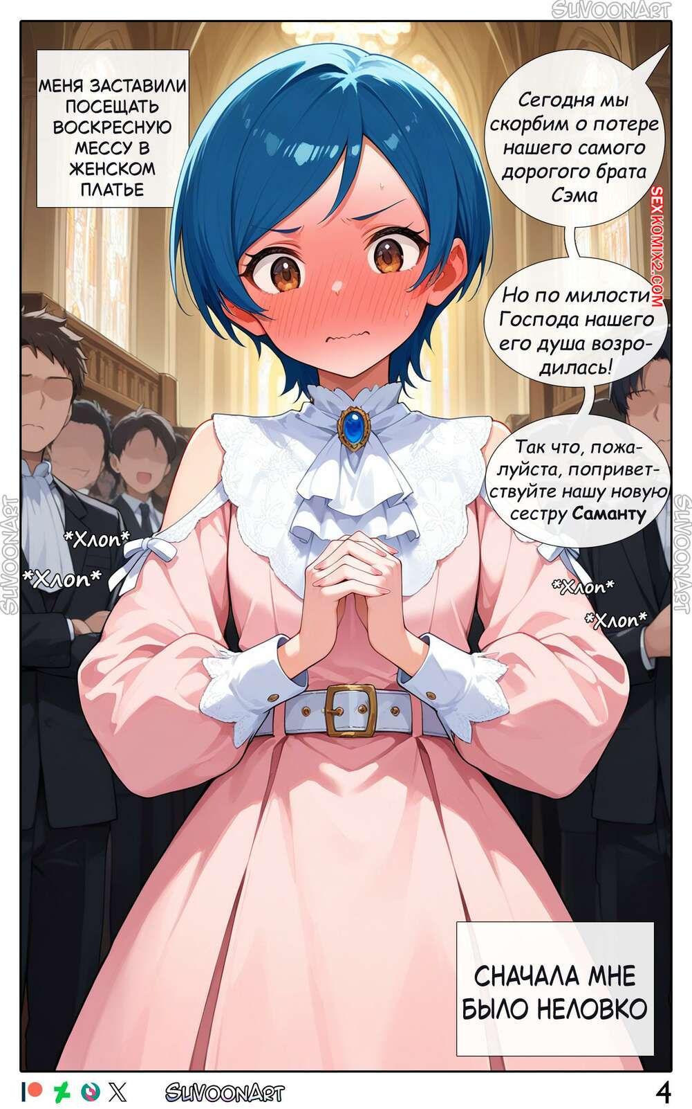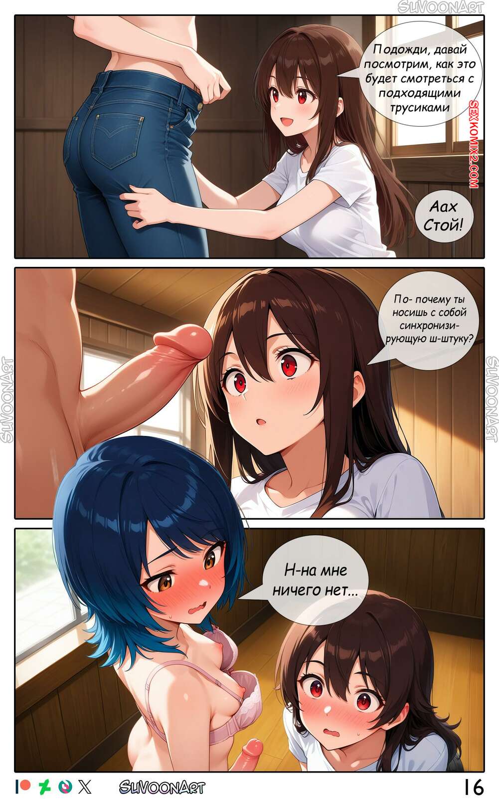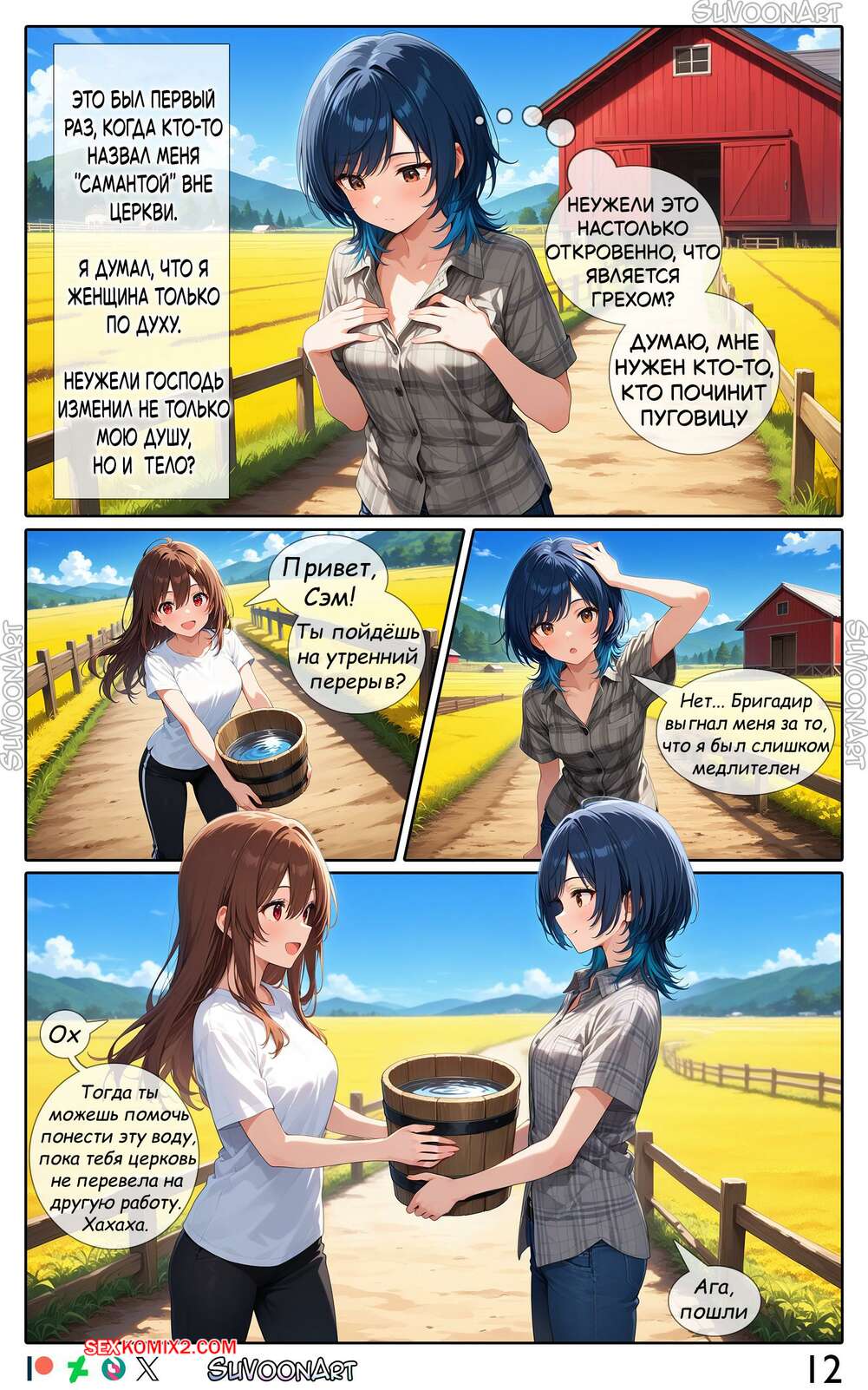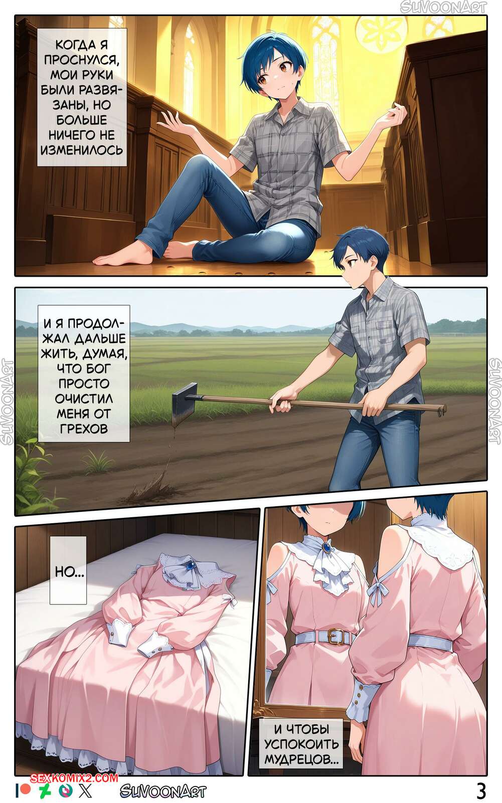 Порно комикс Прими свою веру. Часть 1. Embrace Your Faith. Su Voon Art Молодого парня превратили в девушку, но оставили ему член. Красотка привыкает к новой жизни и трахает свою попку с помощью дилдо, после чего веселится со своей новой подругой.