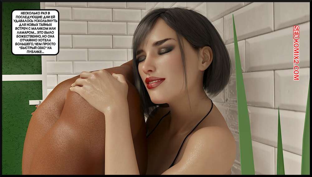 Порно комикс Приключения домохозяйки. Часть 4. A Housewifes Adventures. Alison Hale Подруги устроили встречу с темнокожими парнями, желая пошалить. Красотки встретили парней голыми и стали сосать их члены, после чего раздвинули ножки и отдались в страстном сексе.