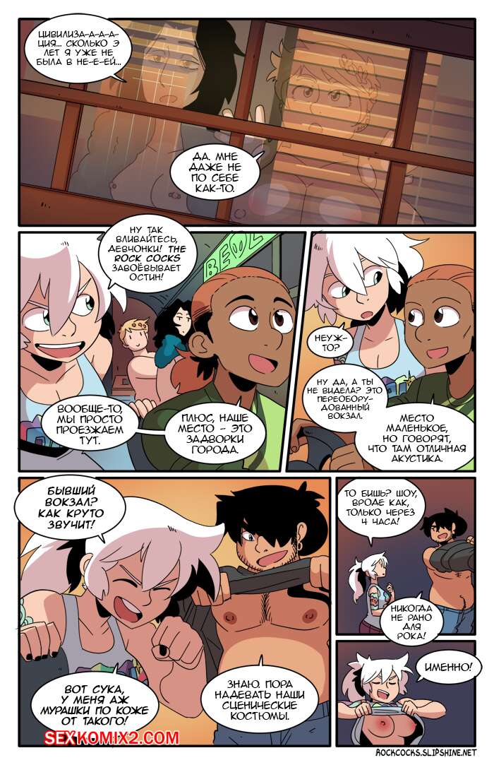 Порно комикс Рок хуй. The Rock Cocks. Часть 11. Облом В перерыве от своих музыкальных дел ребята искали способ хорошенько повеселиться. Две парочки нашли его и решили устроить парную еблю любуясь тем, как ебутся другие. Пока они ебались, за ними следил их дружок, наслаждаясь и подрачивая свой хуй, будучи в полном восторге от увиденного.