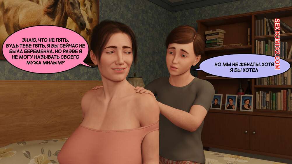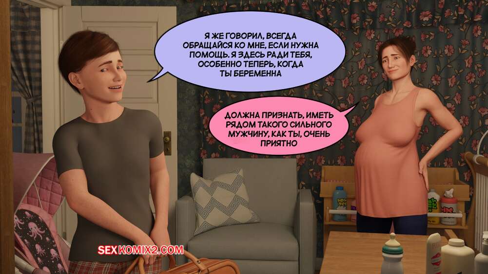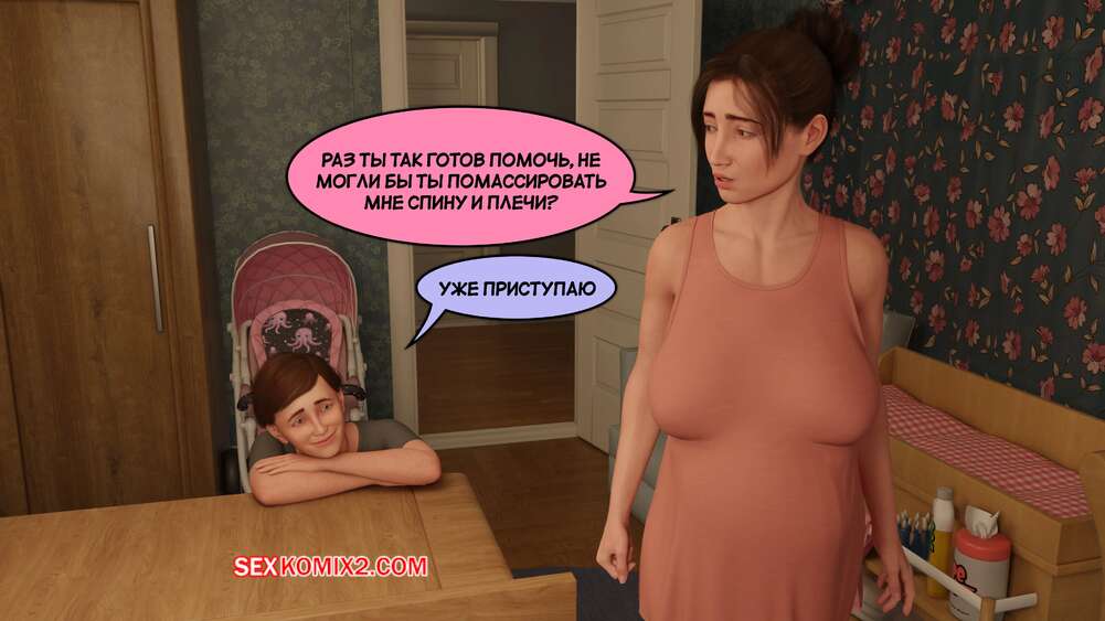 Порно комикс Истории Сантори. Часть 9. Santori Stories. Santo Fabbro Милфа забеременела и сынок заботится о ней, помогая ей во всем. Они решили немного пошалить и мамка отсосала член сына, после чего раздвинула ножки и позволила ему себя трахнуть.