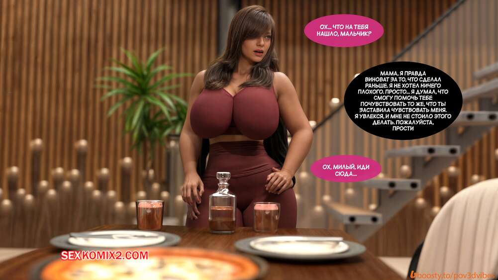 Порно комикс Нетрадиционная терапия. Часть 3. Alternative Therapy. POV3DVibes Горячая милфа заметила у своего сына стояк и повела его в спальню, чтобы помочь. Она разделась перед сыном, чтобы он подрочил, но это не помогло. В итоге они пошли в душ, где парнишка стал тереться членом между ягодиц мамы, а затем кончил ей на попку.
