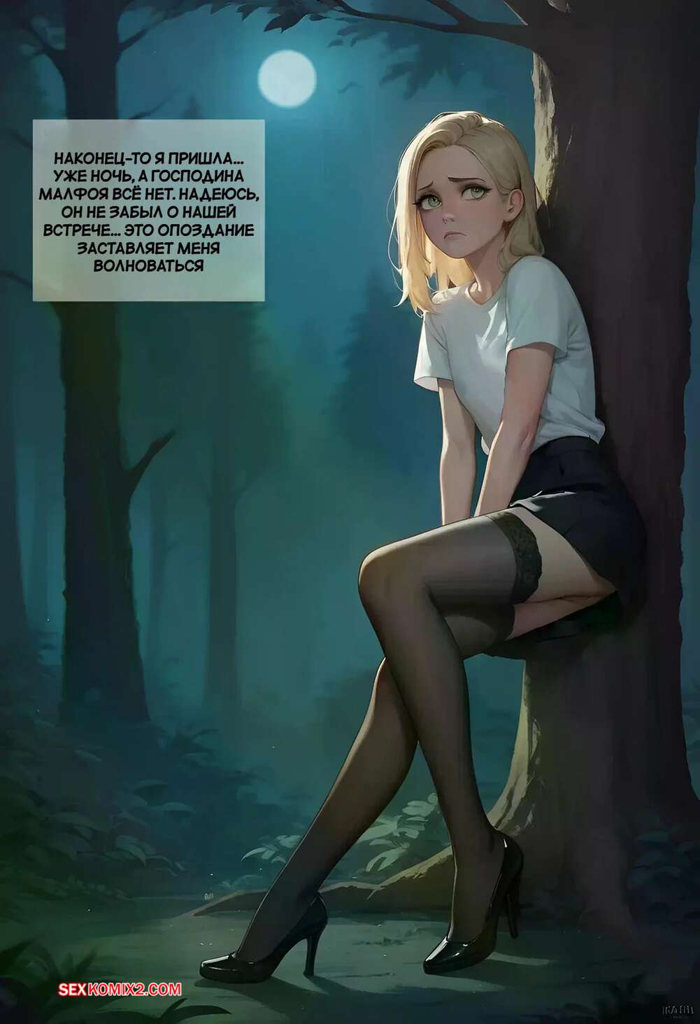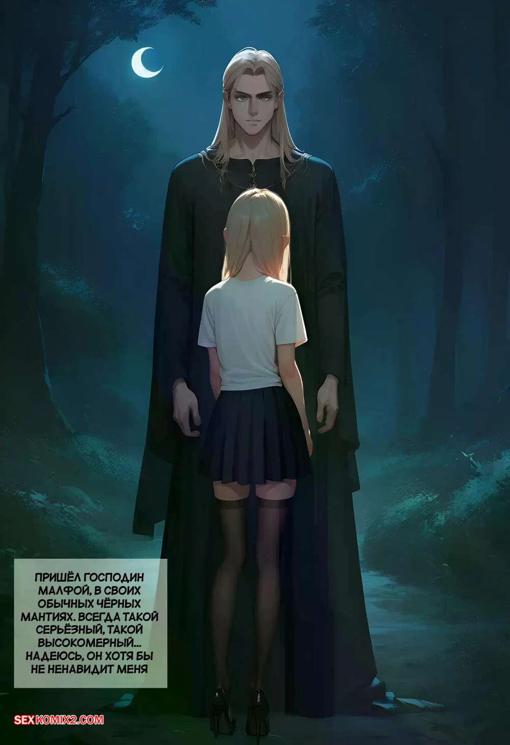 Порно комикс Луна Лавгуд и тайные игры. Часть 3. LUNA LOVEGOOD y los Juegos Secretos. Kain200 Люциус Малфой назначил ночью Полумне встречу в запретном лесу. Красотке было страшно, но она все равно туда отправилась. Темный маг встретил девушку и дал ей отсосать свой член, после чего трахнул ее пизденку и попку, заполняя ее спермой.