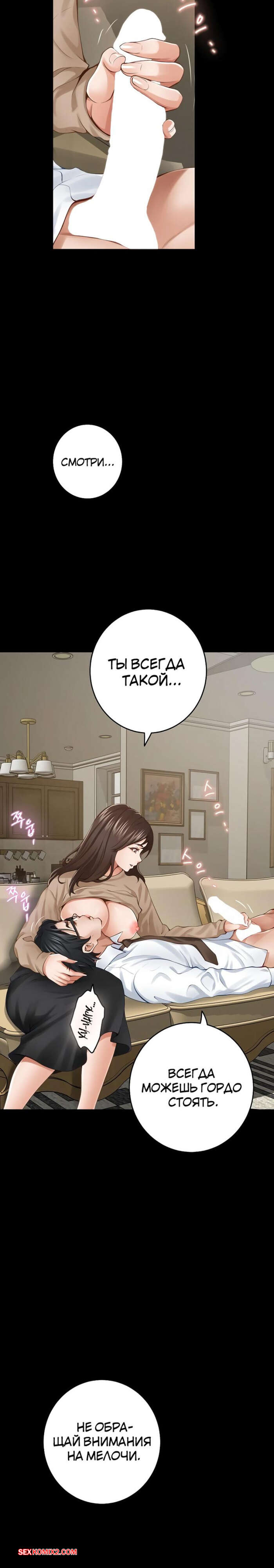 Порно комикс Бог удовольствий. Часть 42 и 43 и 44. kwaelag ui sin Парень вернулся домой после тяжелого дня и горячая брюнетка уложила его к себе на колени, чтобы помочь ему расслабиться. Парень решил немного пошалить и уложил девушку на диван, после чего снял ее трусики и выебал пизденку девушки.