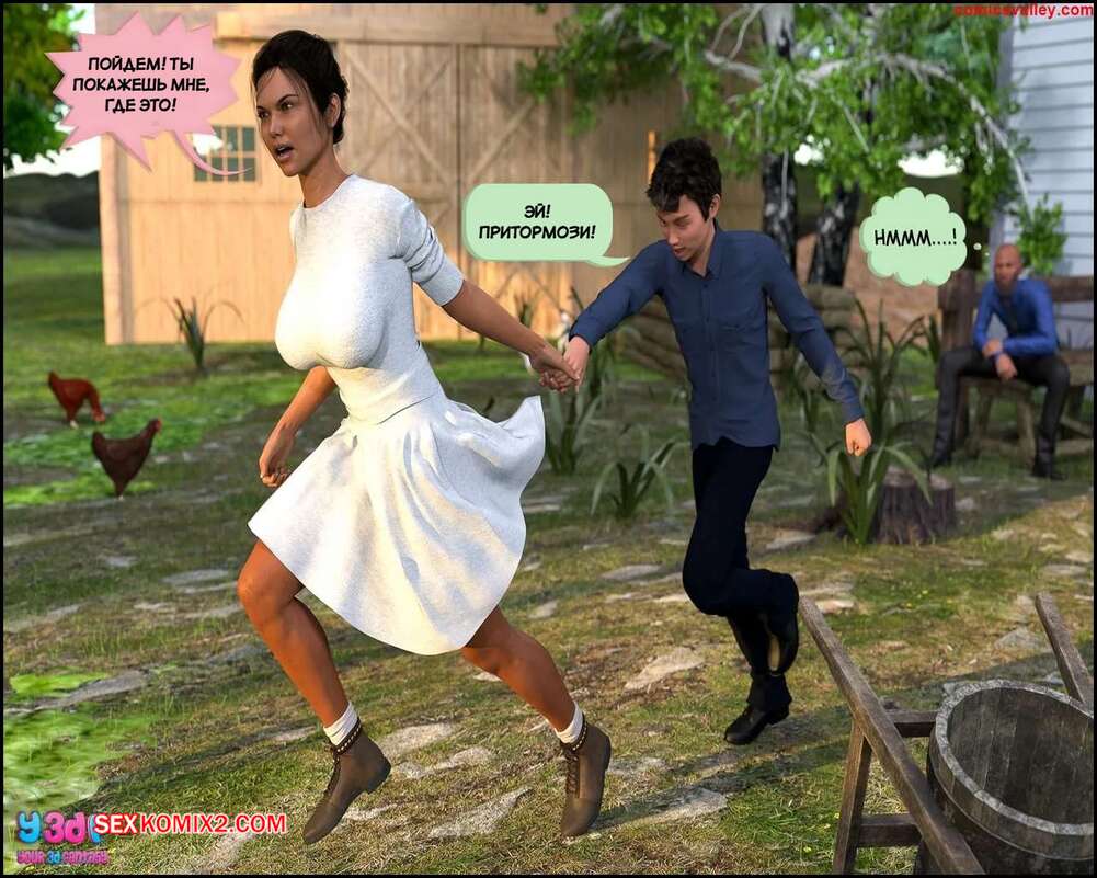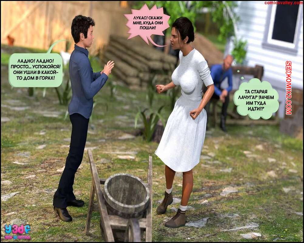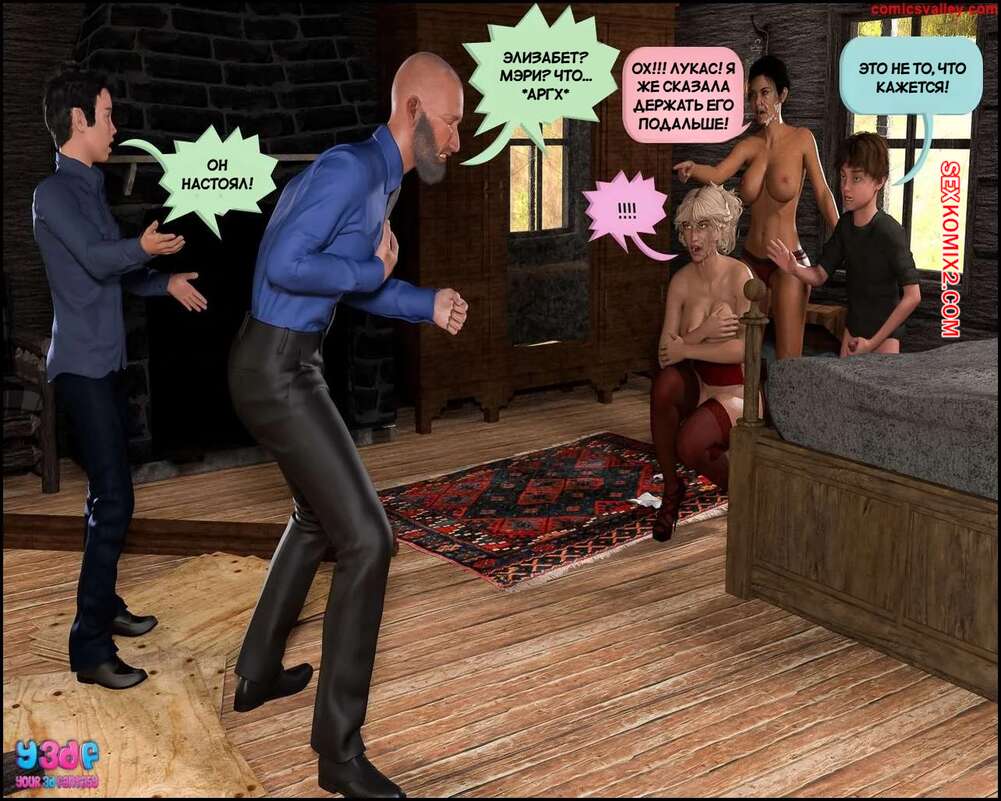 Порно комикс Второзаконие 27. Часть 4. Deuteronomy 27. Y3DF Мэри отправилась со своим сыном в старую хижину, чтобы пошалить. Красотка в сексуальном белье стала сосать член сына и дала ему себя трахнуть, но их застала Элизабет и присоединилась к действию.