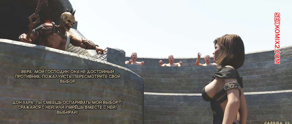 Порно комикс Миллион лет нашей эры. Часть 2. One Million Years A.D. Casgra Две девушки участвуют в гладиаторских боях, радуя зрителей. Ночью девушек отправляют к их хозяевам, чтобы они ублажили их большие члены своими сочными дырочками.