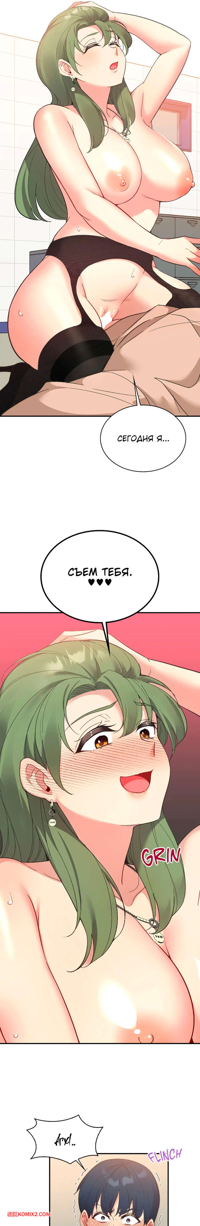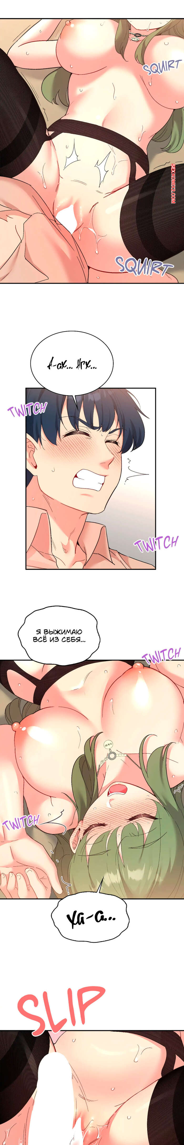 Порно комикс Приложение любви. Часть 69 и 70 и 71 и 72. slgiroown irplesanghwal Возбужденная красотка схватила парня за руку и потащила его в кабинет, где они смогли остаться наедине. Девушка осталась лишь в сексуальных чулках, после чего оседлала хуй парня, чтобы он потушил пламя в ней.