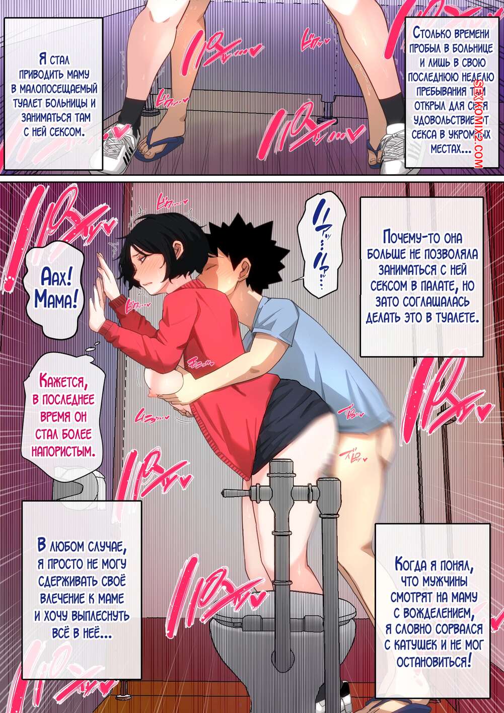 Порно комикс Мама заботится обо мне в больнице. Часть 2. Natsume Benkei Горячая милфа пришла навестить своего сына в больницу и застала его со стояком. Красотка готова на все, чтобы помочь расслабиться парню. Мамочка отсосала хуец сына, после чего дала ему себя трахнуть.