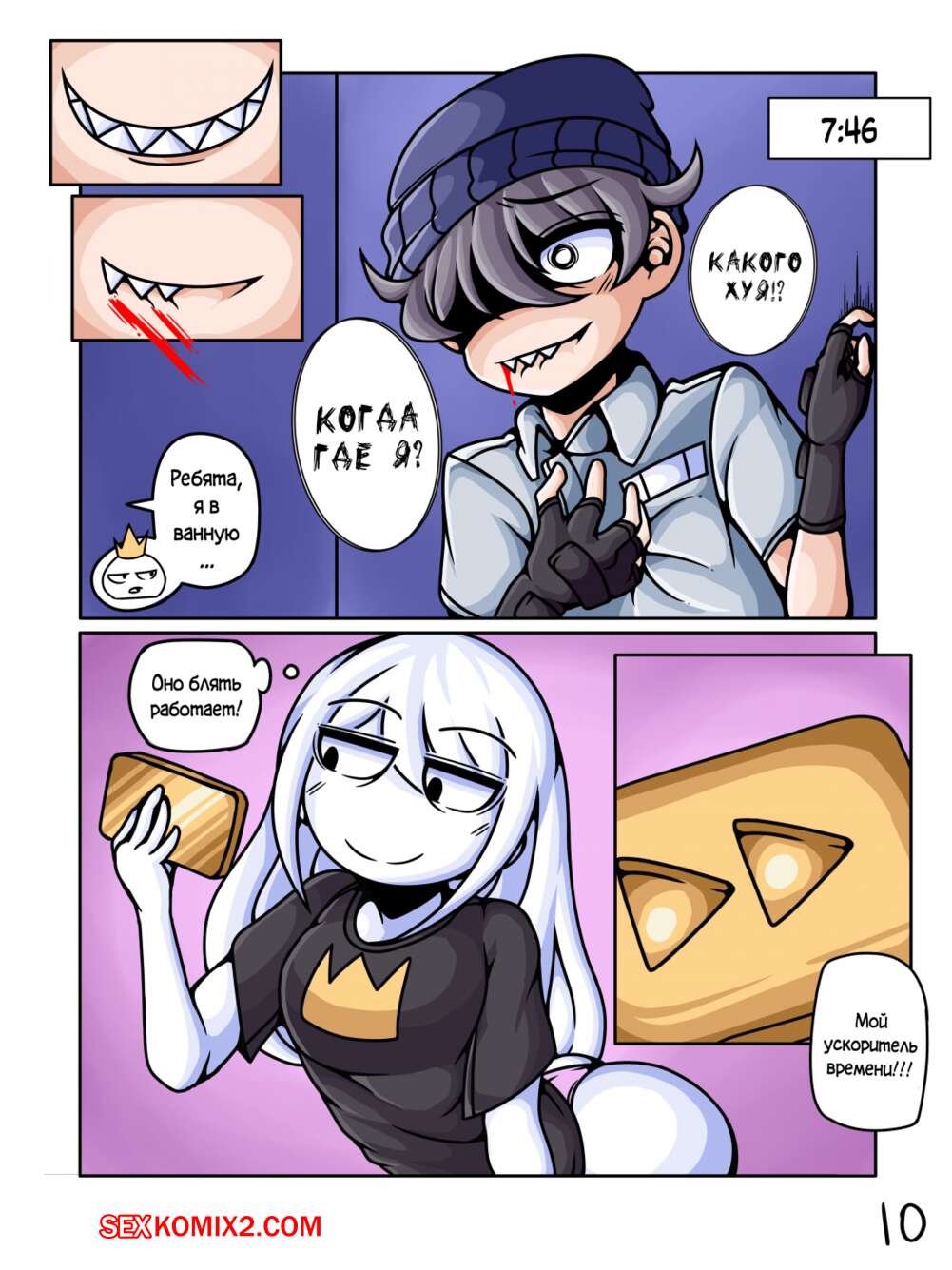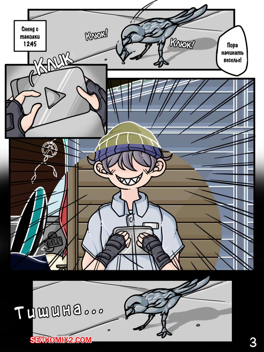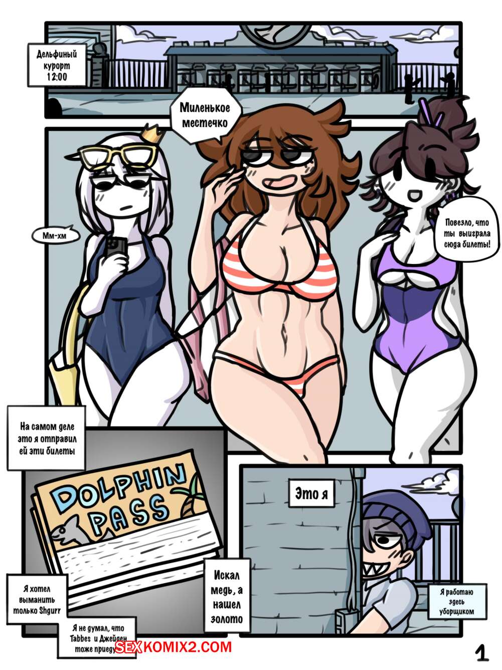 Порно комикс Пауза. Pause Animator Resort Три красотки отправились на отдых, где за ними следил озабоченный парень. Он мог останавливать время и использовал это, что наслаждаться телочками, суя им в рот свой хуй, а затем обильно туда кончая. Одну дамочку он вообще остановил в море и выебал ее пизду.