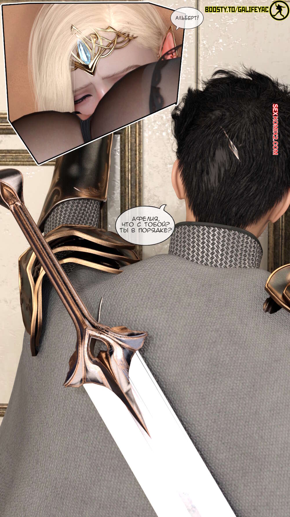 Порно комикс Похотливые приключения в альтернативном мире. Часть 2. Эпизоды 1 2 3 4. Красивая принцессе проводит время в одиночестве в своем замке, она очень сильно обрадовалась, когда к нет в гости пришел рыцарь и покатал на твоем члене.