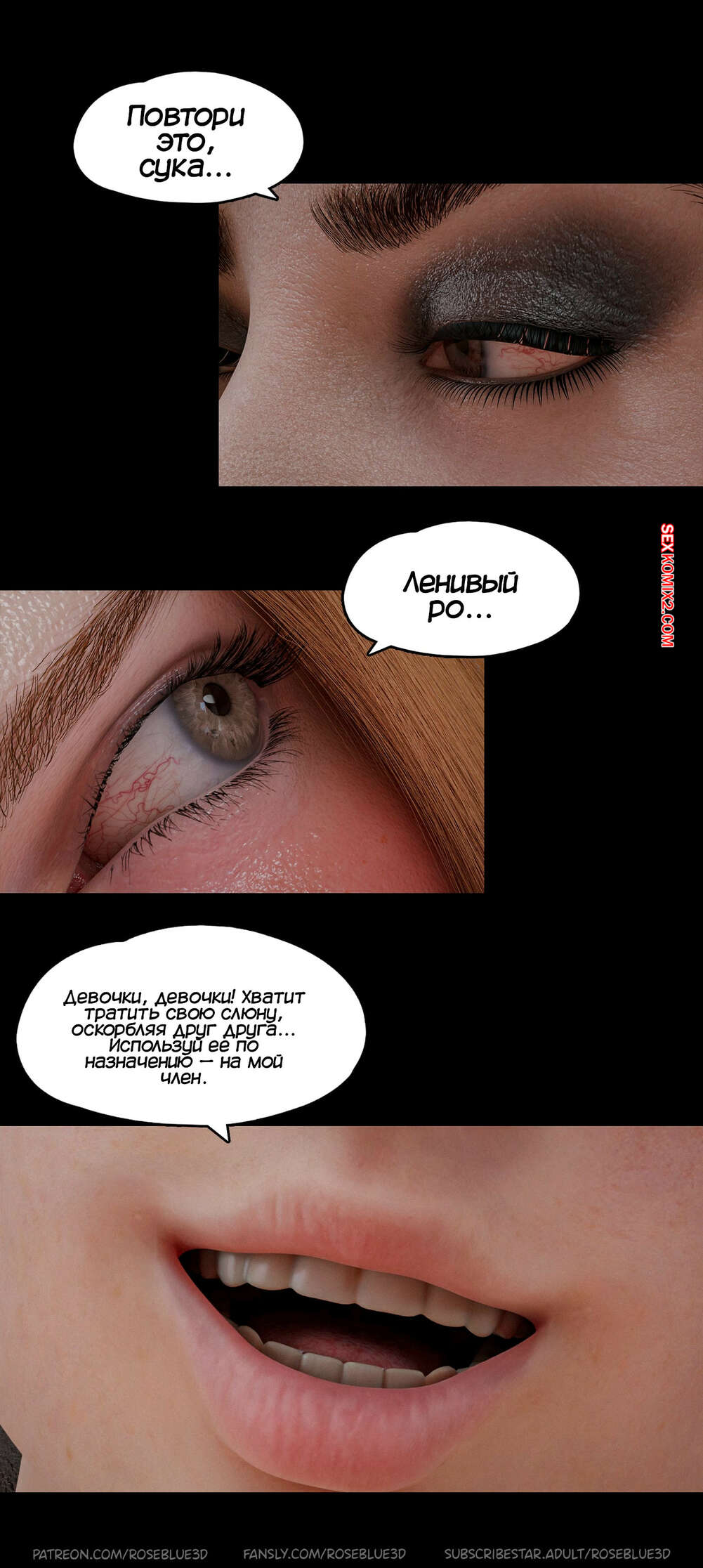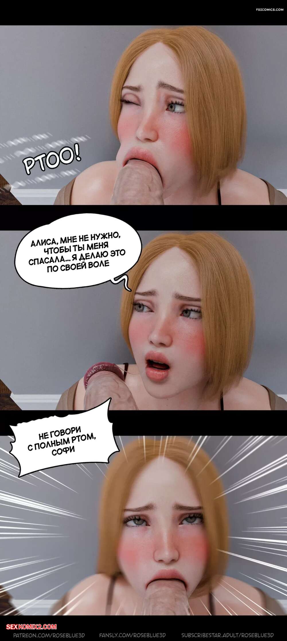 Порно комикс Моя соседская вдова. Часть 45. My Neighbors Widow. Rose Blue 3D. Девушка шокирована от увиденного, на ее глазах ее парень вставляет глубоко в горло свой огромный хуй ее подруге. Она же его сводная сестра, у парня нет никаких моральных принципов.