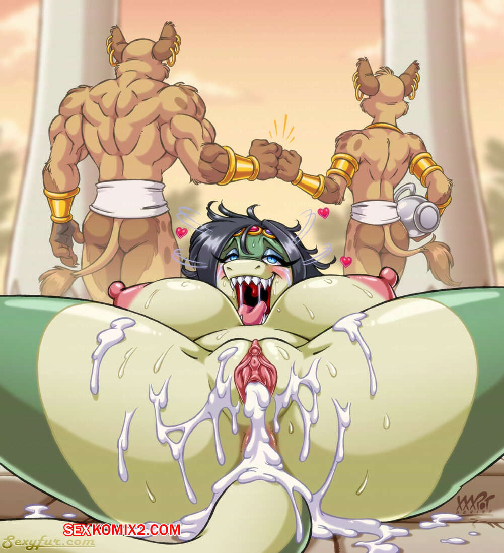 Порно комикс Фурри. Predatory Pleasure Сисястая девушка крокодил напрыгнула на парня, чтобы оседлать его огромный хуй. К счастью, к нему на помощь прибежал его друг тоже с огромным членом и они на пару отъебали дамочку в две щели, оставив ее без сил.