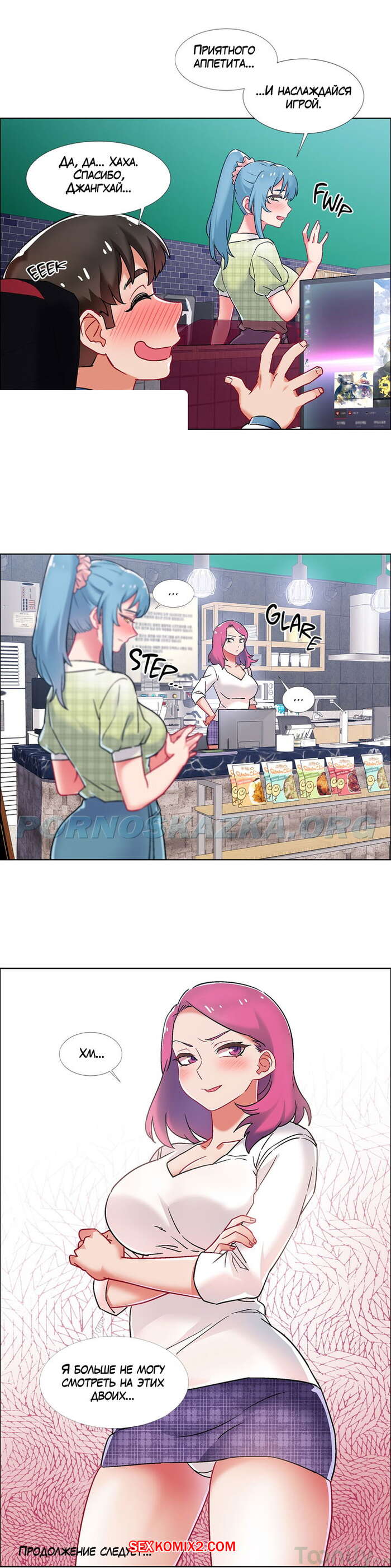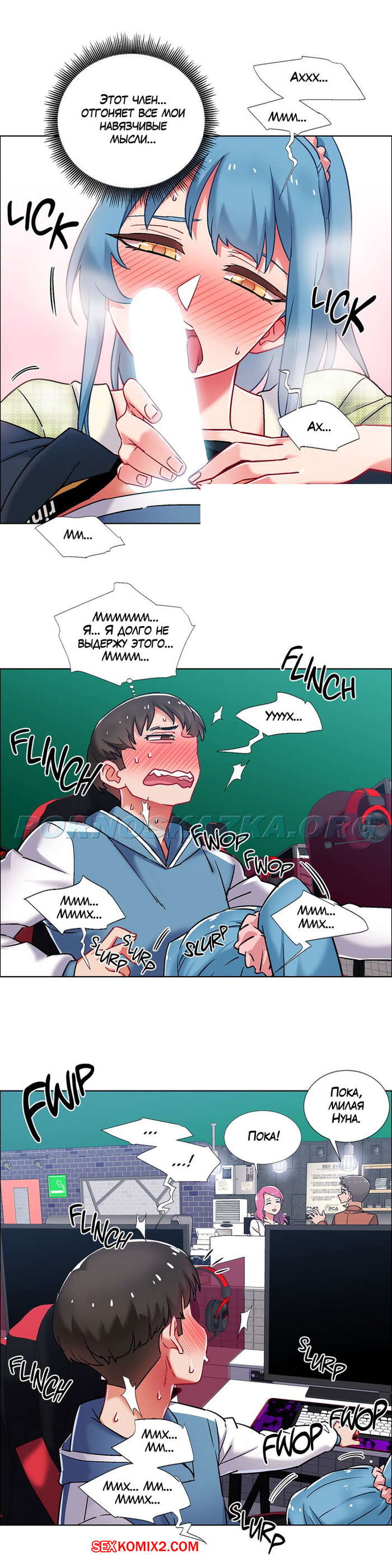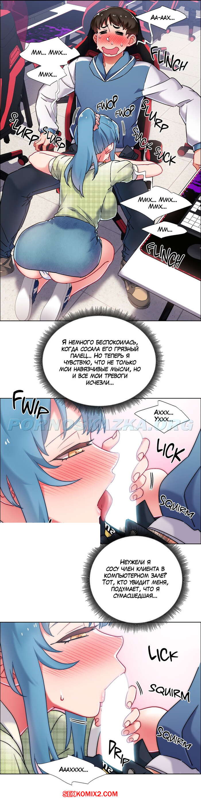 Порно комикс Прокат девушек. Часть 37. Rental Girls. В компьютерном клубе к парню пристала красивая девушка, она явно хотела от него секса. Девушка взяла его палец и начала жадно сосать, парень возбудился и захотел продолжения.