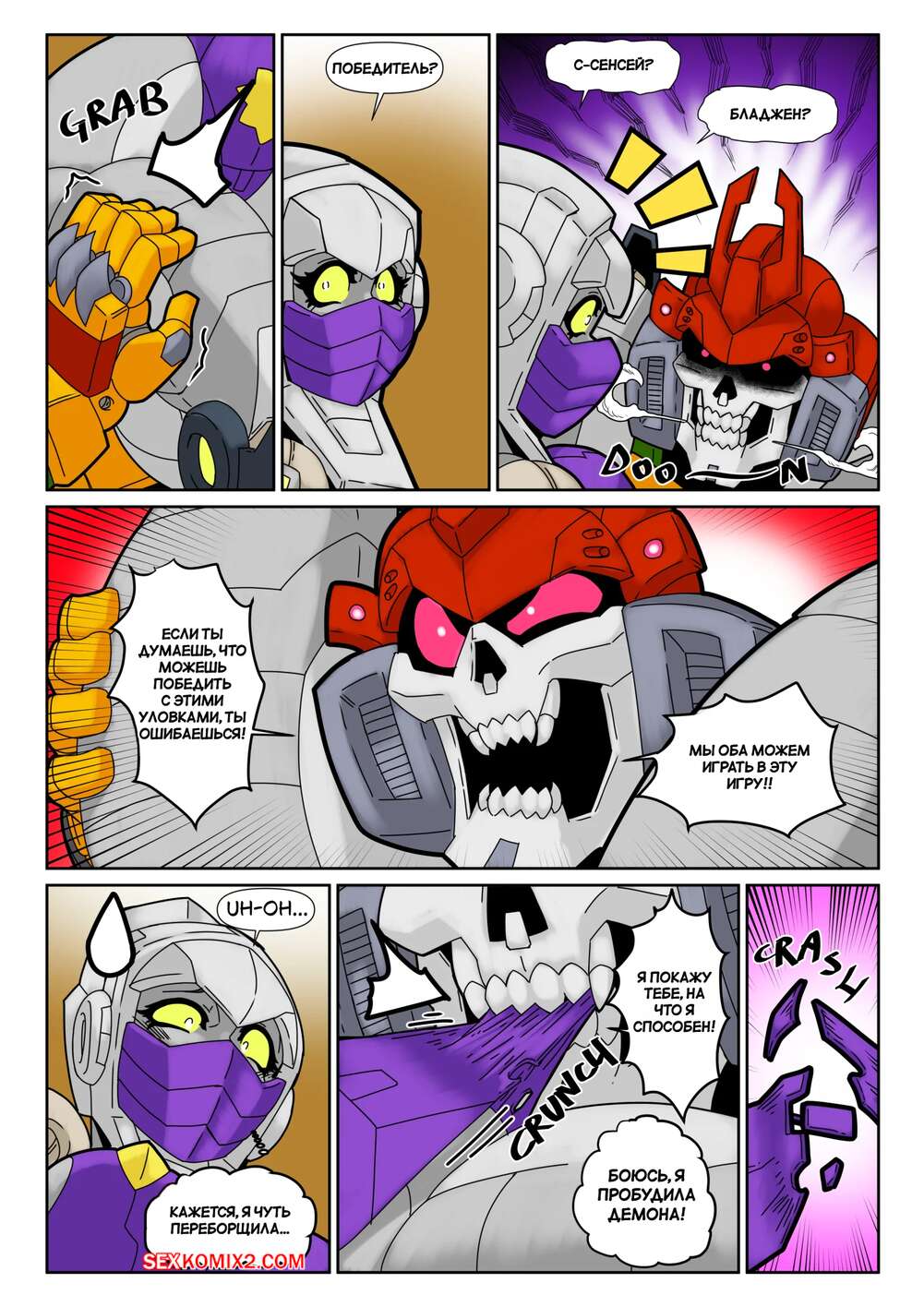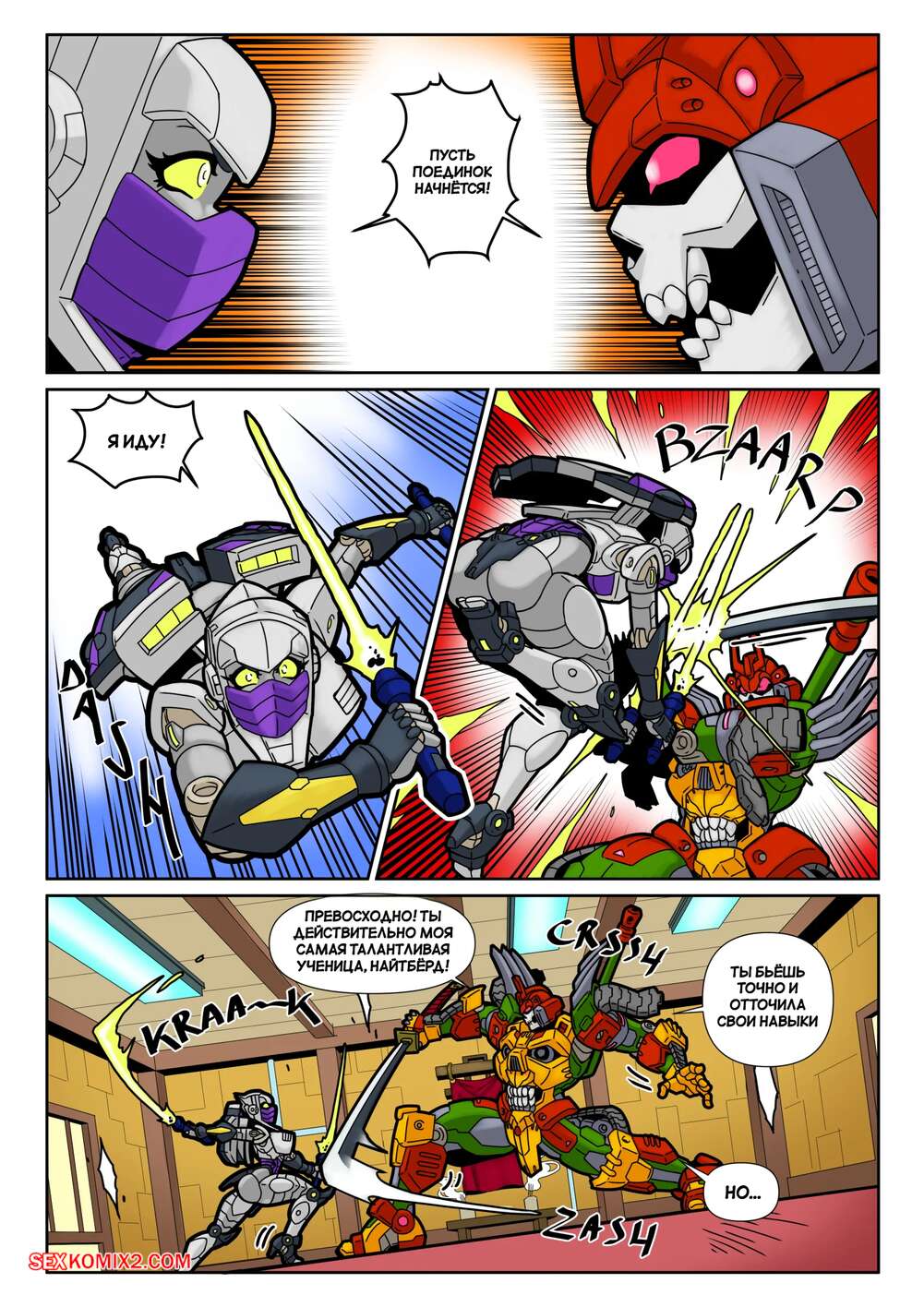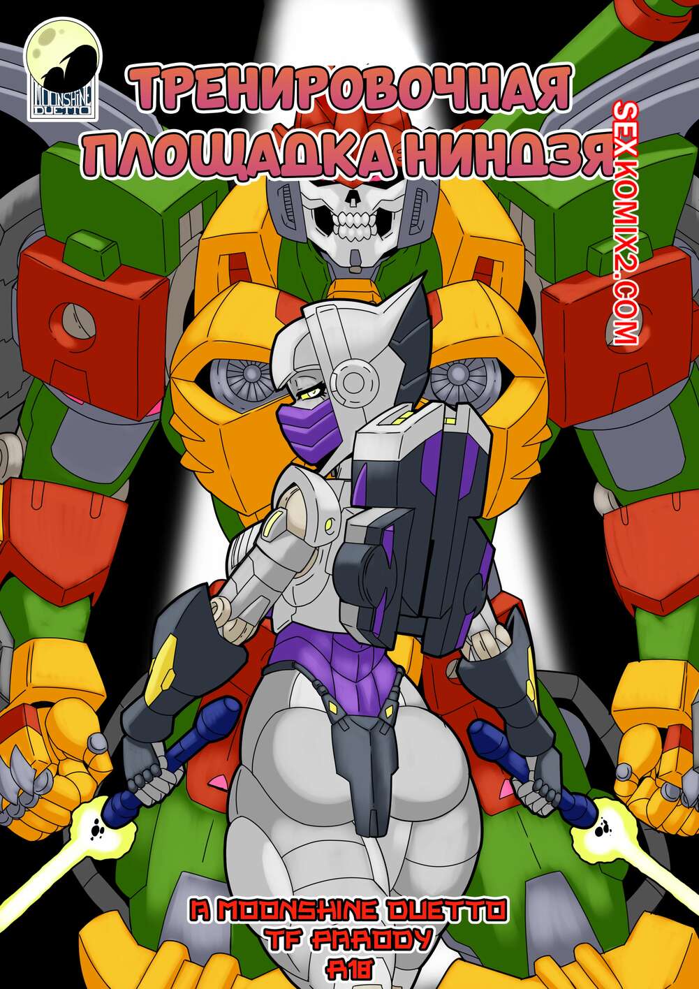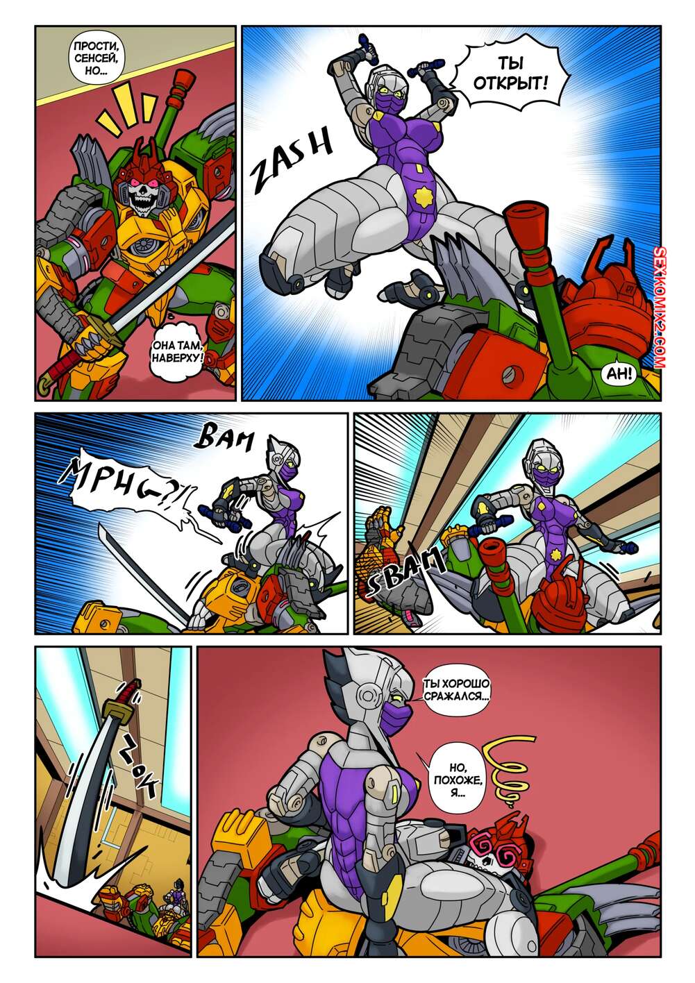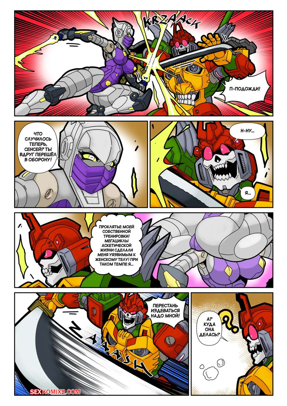 Порно комикс Тренировочная площадка ниндзя. Ninja Training Grounds. MAD Project. Парень и девушка трансформеры вступили в схватку и вскоре пизденка девушки оказалась перед лицом противника. Он возбудился и стал ее вылизывать, после чего схватил девушку своими металлическими щупальцами и хорошенько ее выебал большим членом.